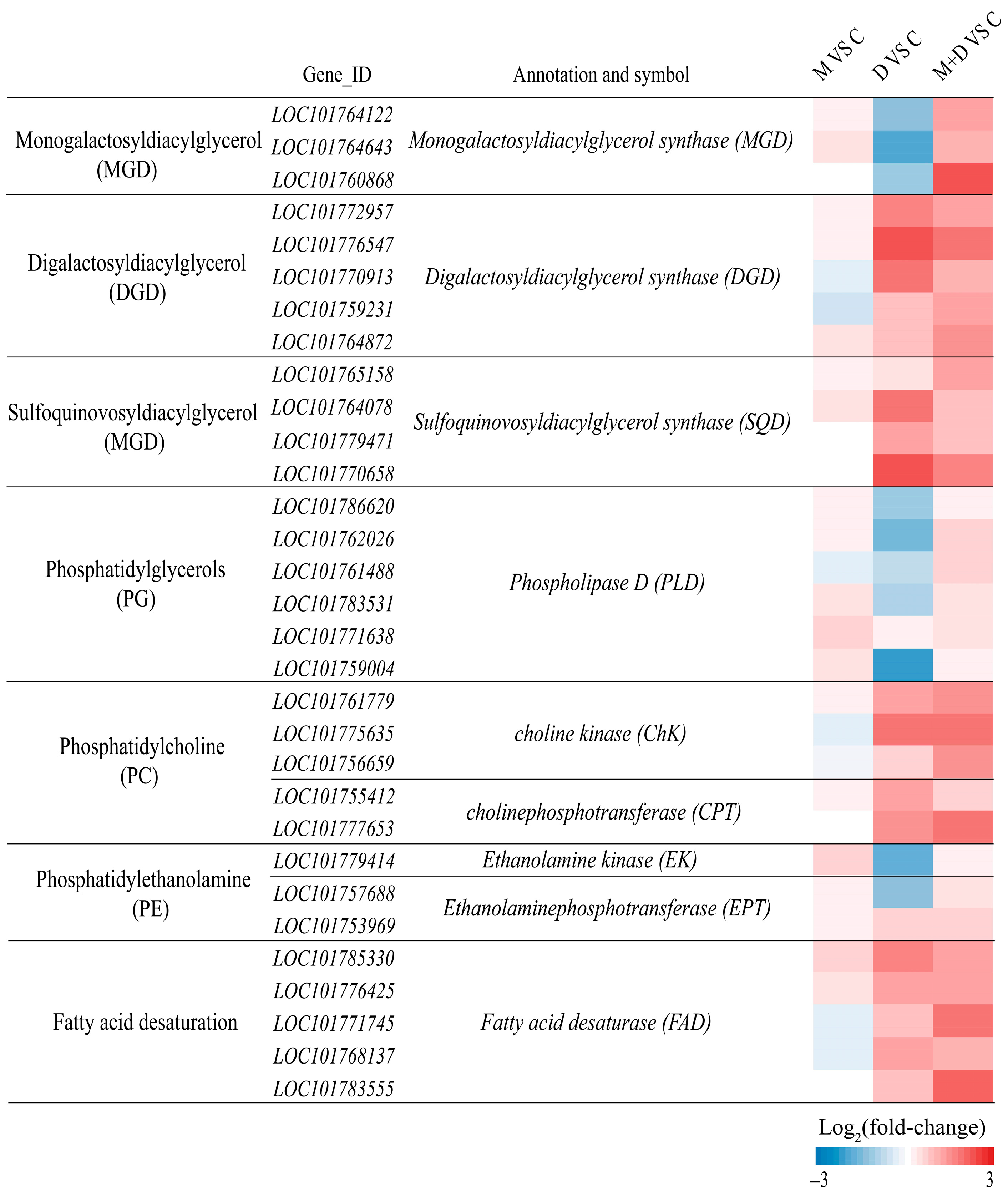 2.6. Differentially Expressed Genes Associated with Lipid Metabolism Under Drought Stress