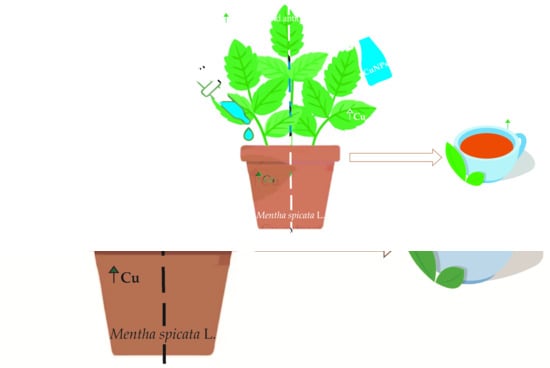 Peshkova, A.; Zinicovscaia, I.; Cepoi, L.; Rudi, L.; Chiriac, T.; Corcimaru, S.; Yushin, N.; le Roux, R. Features of Translocation of Copper Nanoparticles in Mentha spicata L. and Extraction into Infusion. Plants 2025, 14, 3318. https://doi.org/10.3390/plants14213318