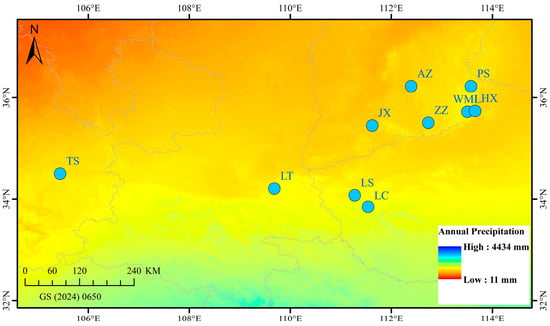 To test the correlations of different metabolites with environmental variables, we extracted 20 environmental variables (Table 2 and Table S2) of 10 F. suspensa populations under historical conditions (1970–2000) from the world climate database (https://www.worldclim.org/data/worldclim21.html, accessed on 15 February 2025), with 2.5 arcmin resolution.