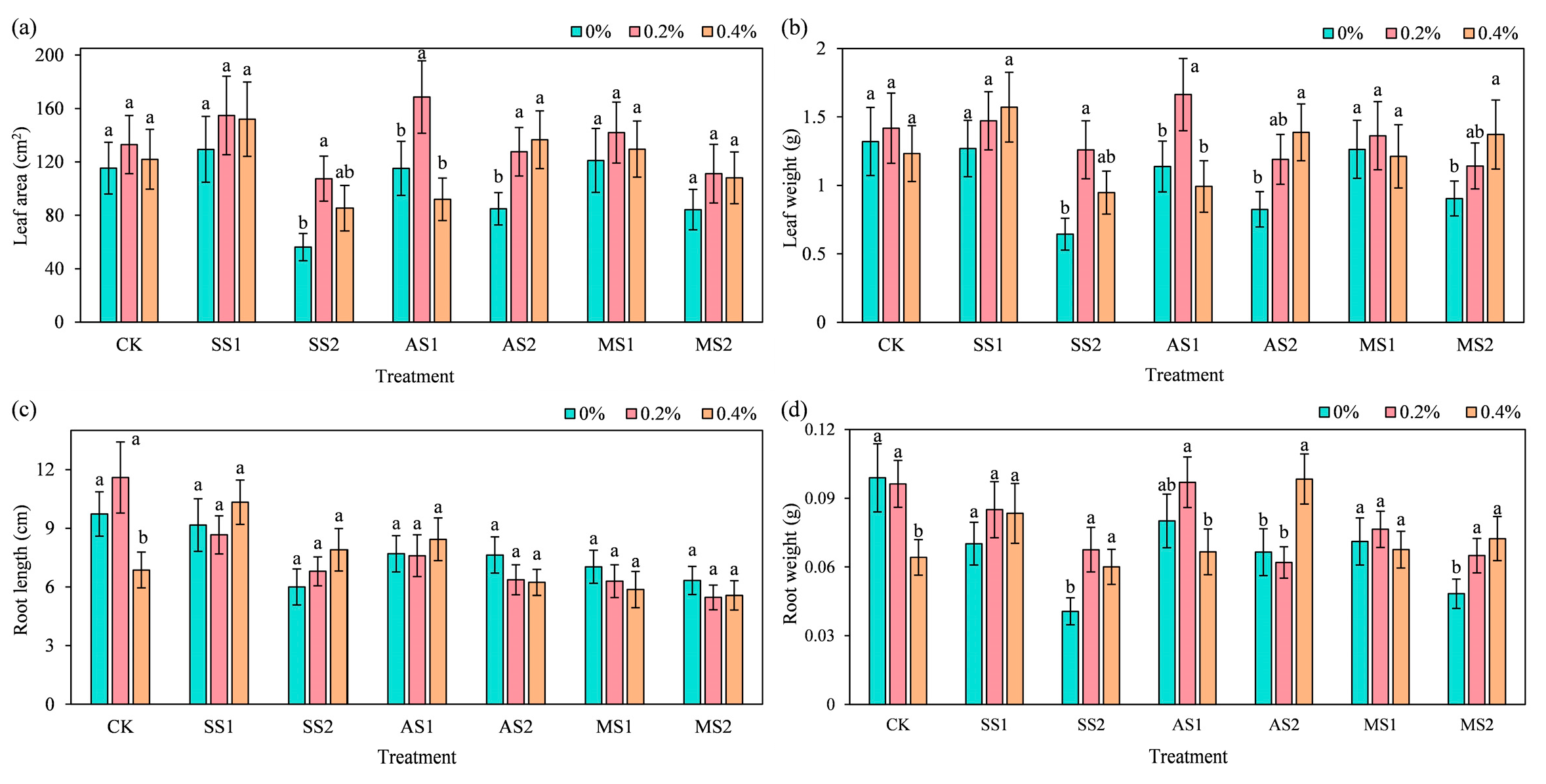 Chicago/Turabian StyleWang, Yinhua, Bingqin Teng, Haodong Zhang, Zhengqian Zhou, Yangbin Xin, Liqun Cai, and Jun Wu. 2025. "Effects and Mechanisms of Attapulgite Clay-g-(AA-co-AAm) Hydrogel (ACH) in Alleviating Saline Stress in Spinach" Plants 14, no. 21: 3330. https://doi.org/10.3390/plants14213330