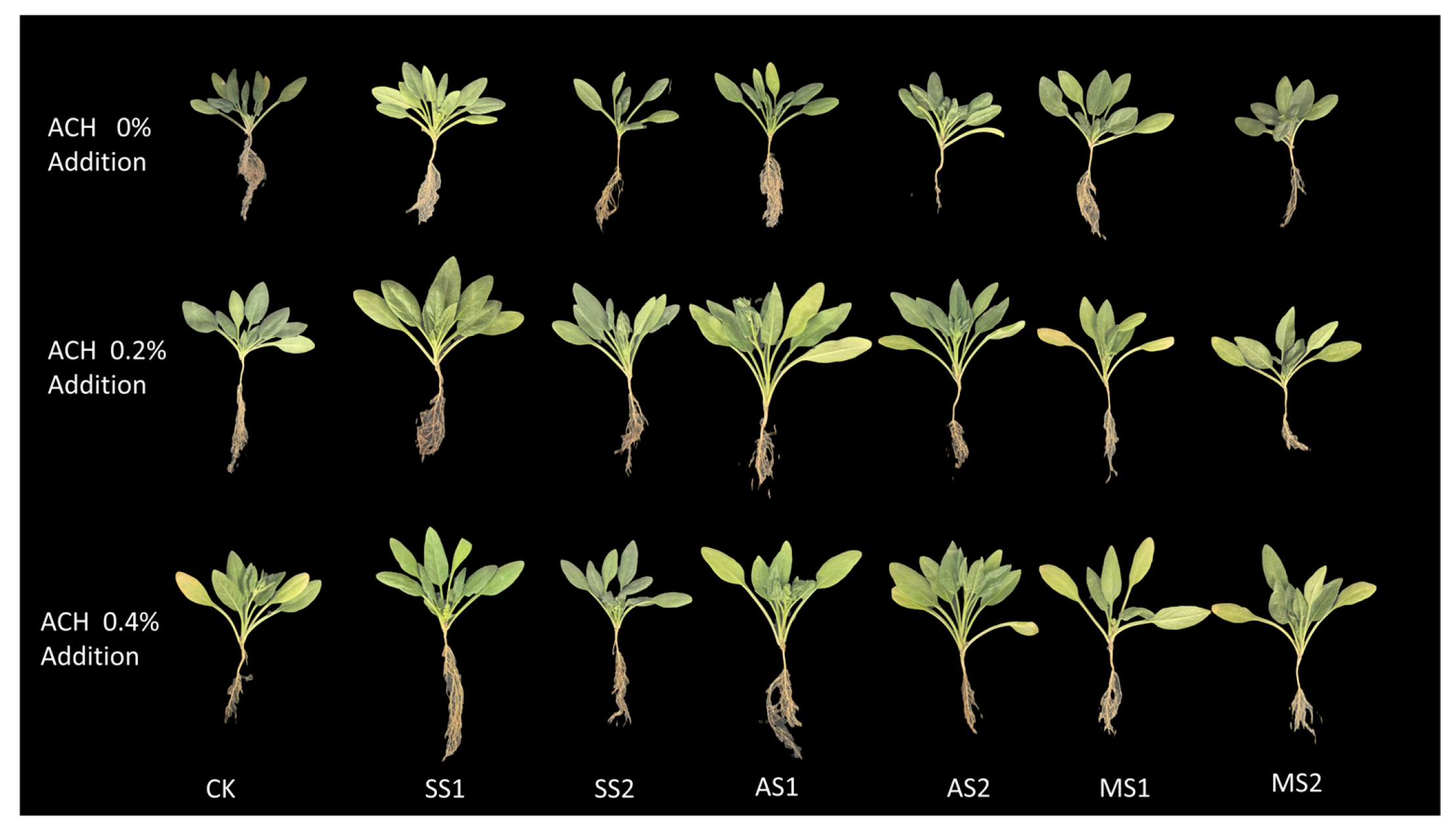 2.3. Effect of ACH Addition on Growth Indices of Spinach