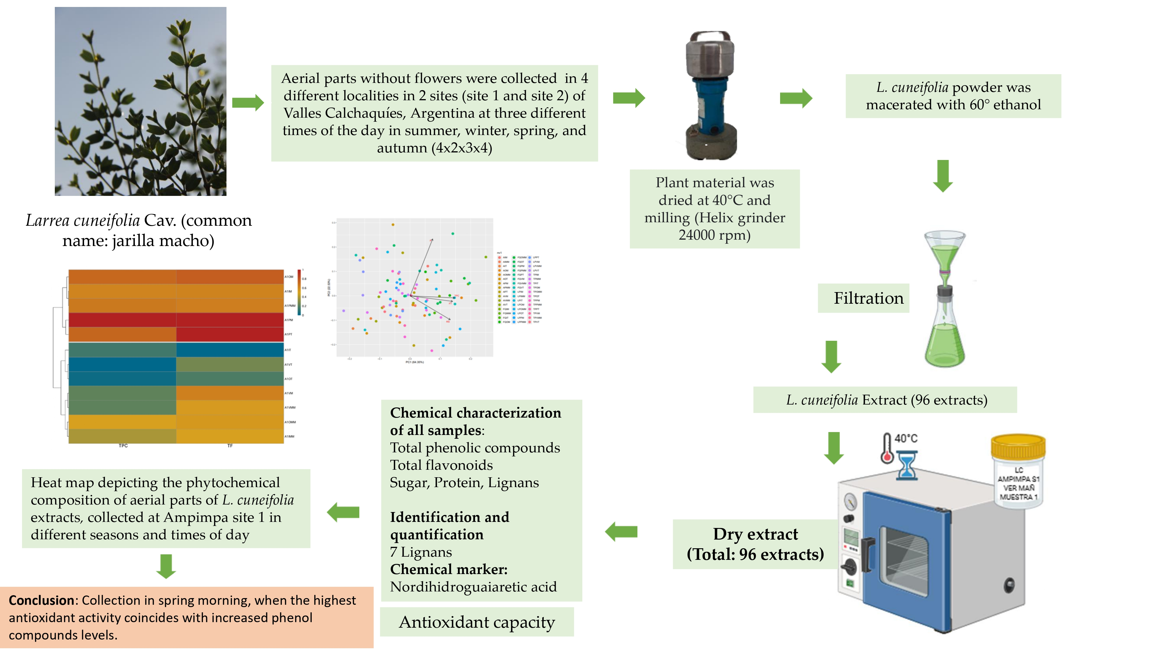 Barrera, M.C.; Rosa, M.D.; Zampini, I.C.; Isla, M.I. Impact of Daily and Seasonal Variation on the Phytochemical Profile of Larrea cuneifolia in Northwestern Argentina. Plants 2025, 14, 3332. https://doi.org/10.3390/plants14213332