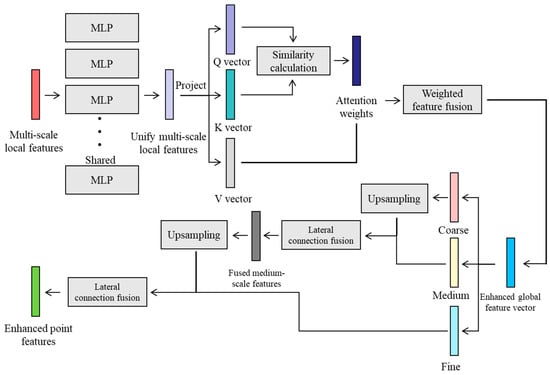 - Context Fusion Module (CFM): To integrate the multi-scale local features extracted by MRSM with global morphological information, the CFM module aggregates features across different scales and locations via attention mechanisms or graph convolutional networks. This enriches the feature representation of each point with both its local structural context and its position within the global structure, effectively addressing occlusion and adhesion issues.