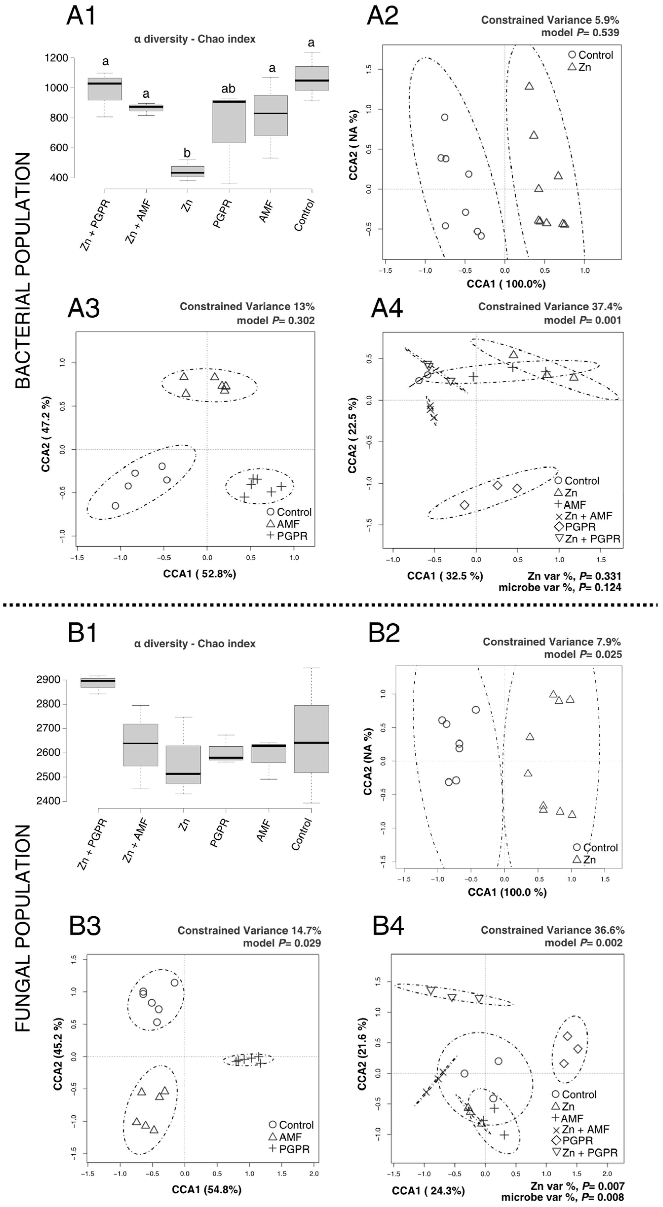 2.2. MBs Specifically Modulate the Rhizosphere Microbial Population Under Cd and Zn-Induced Stress