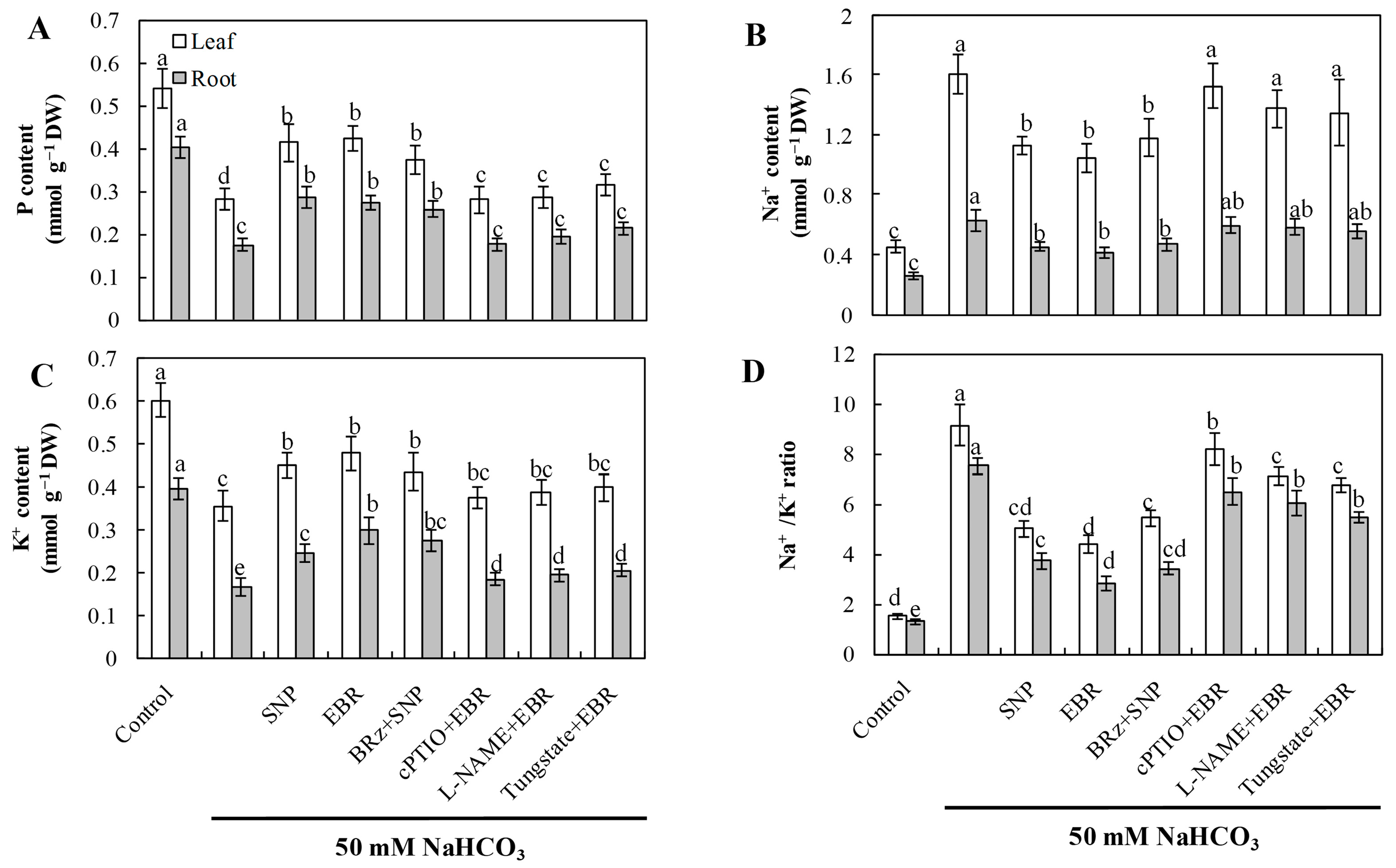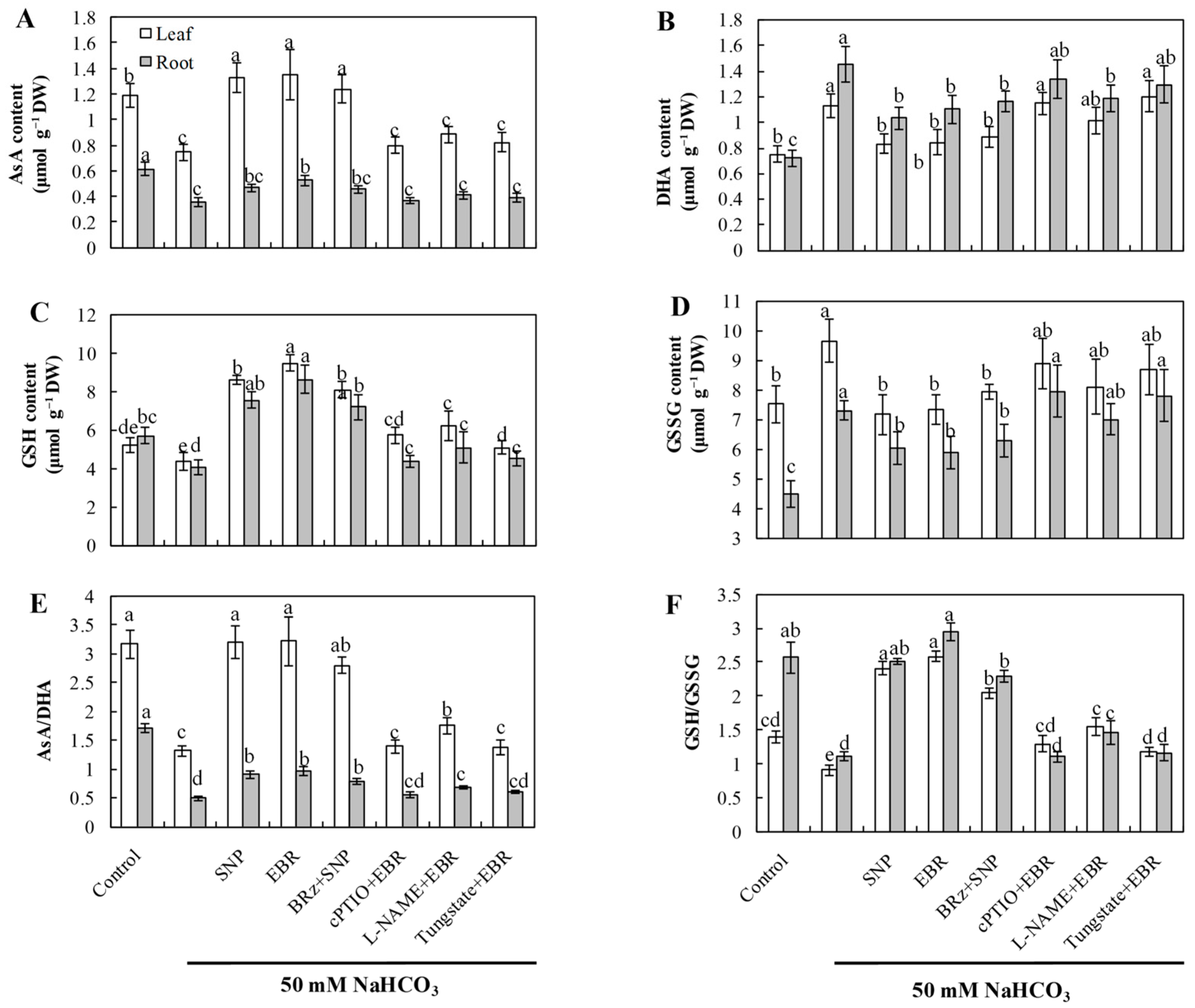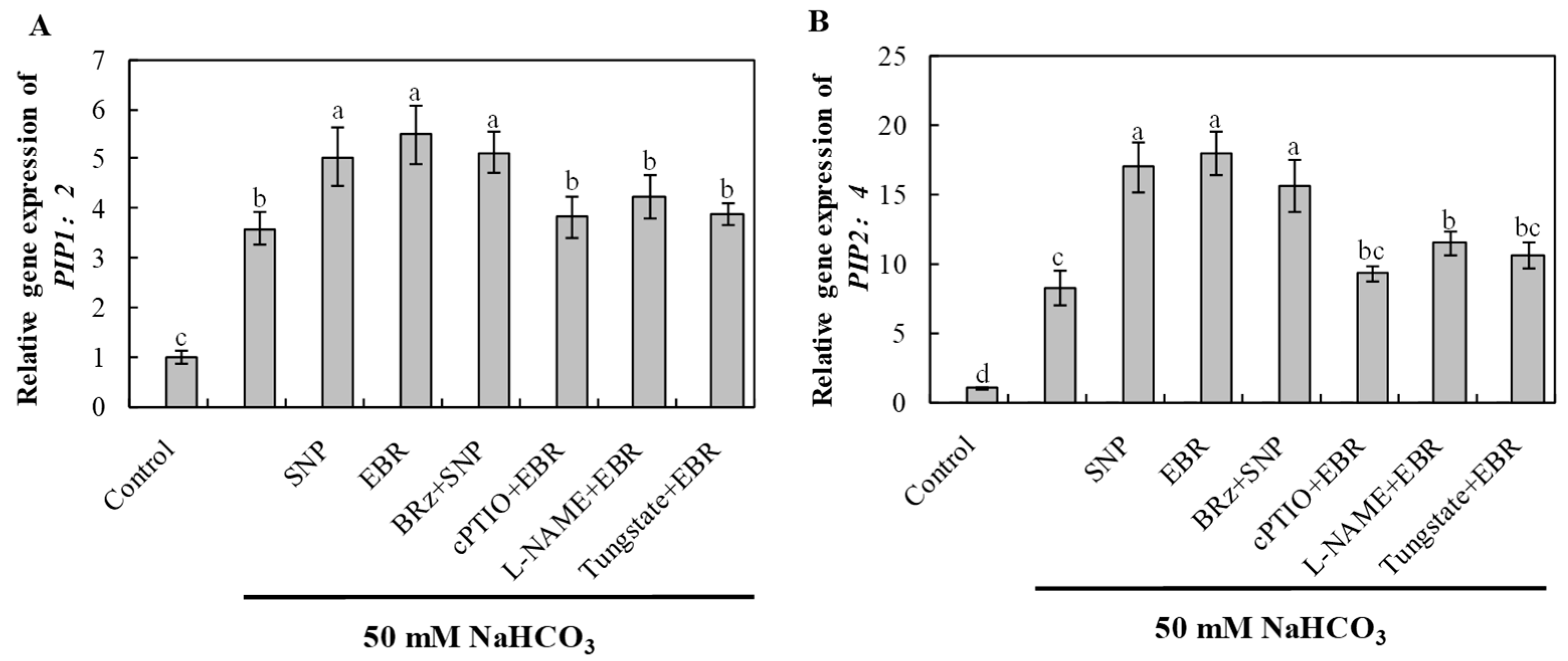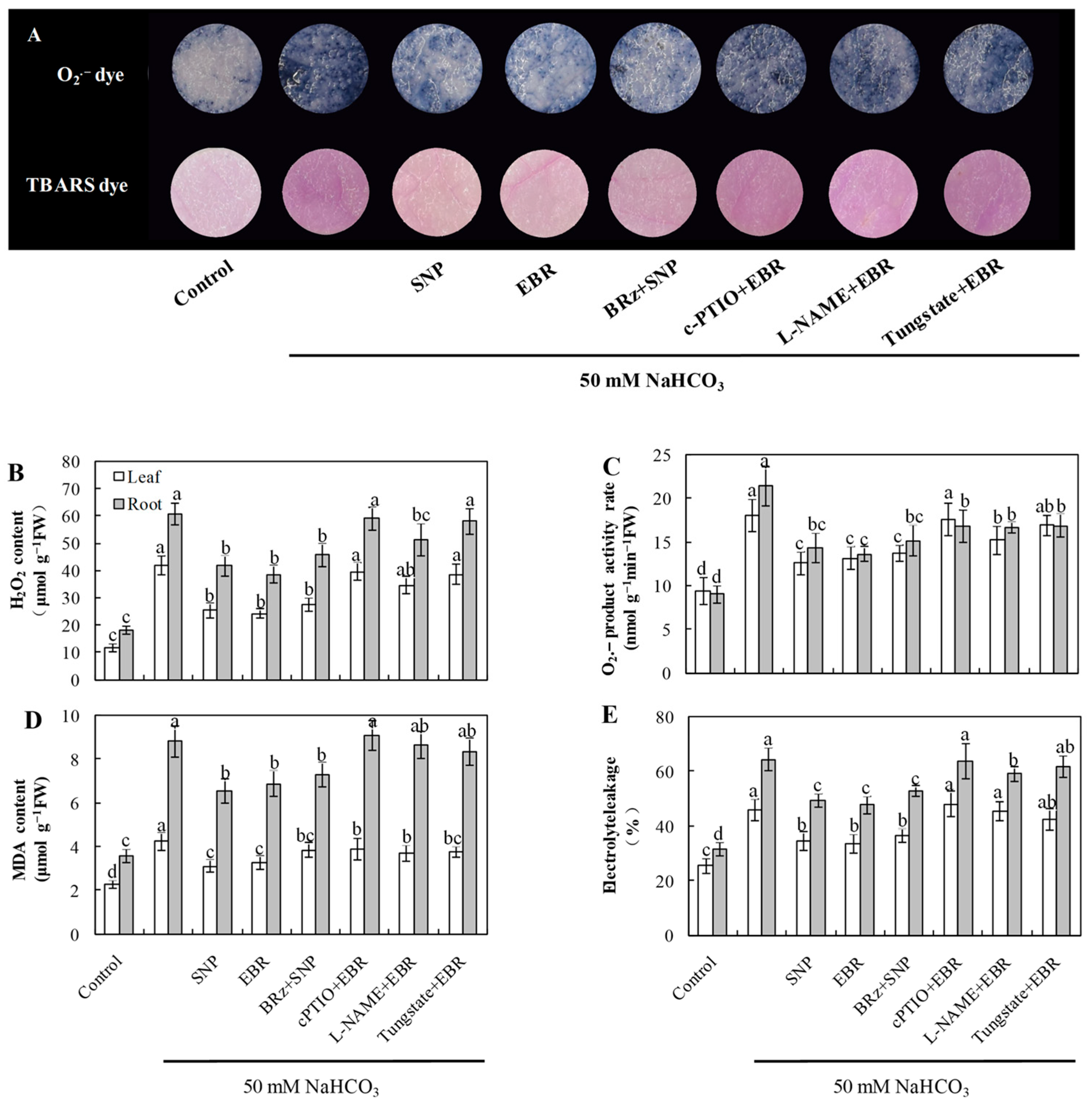 - NaHCO3 + EBR—50 mM NaHCO3 combined with 0.2 μM 24-epibrassinolide (EBR).