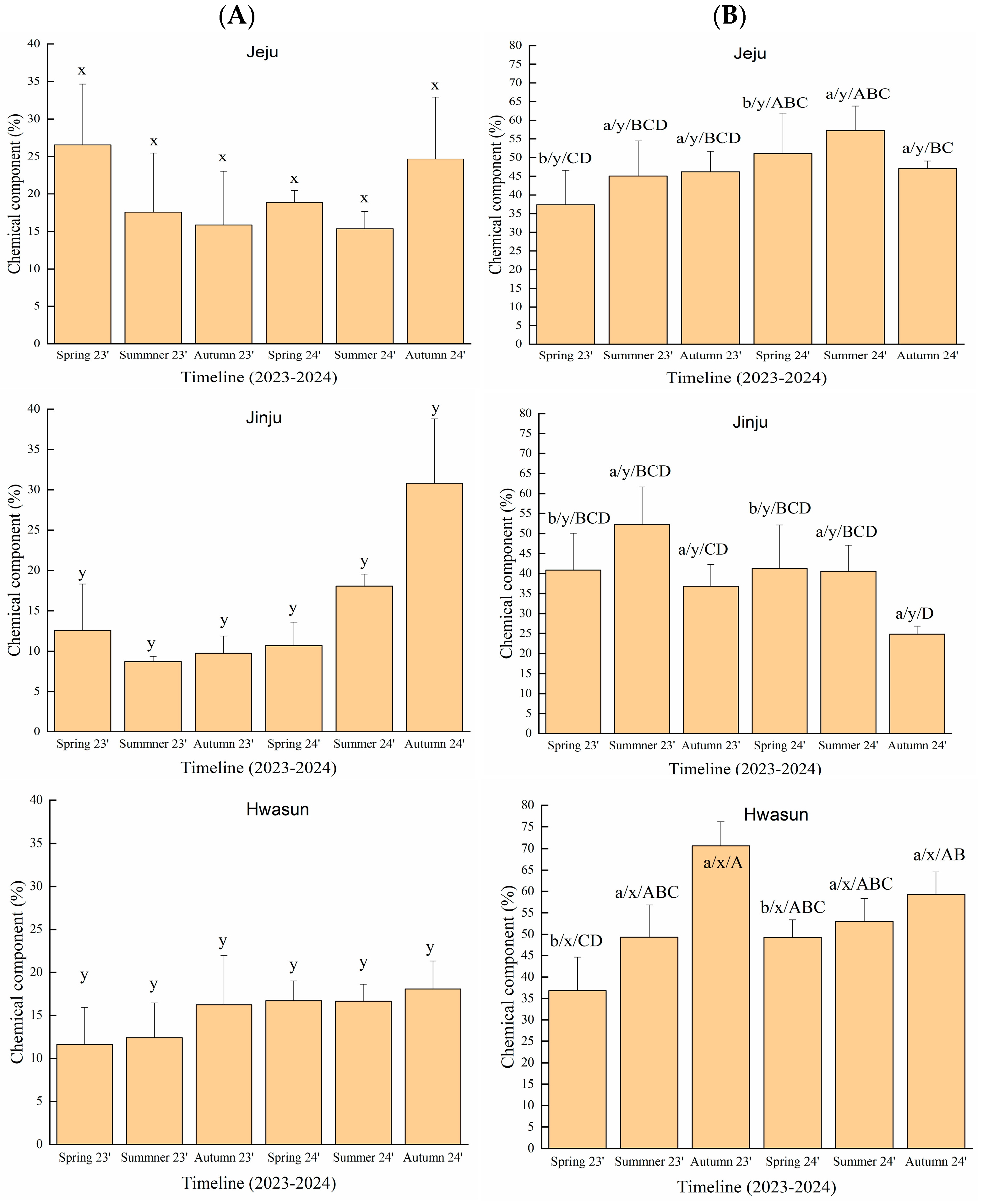 Chicago/Turabian StylePark, Chanjoo, Nahyun Kim, and Mi-Jin Park. 2025. "Seasonal and Regional Effects on the Yield and Bioactive Constituents of Torreya nucifera Essential Oils in South Korea" Plants 14, no. 21: 3370. https://doi.org/10.3390/plants14213370
