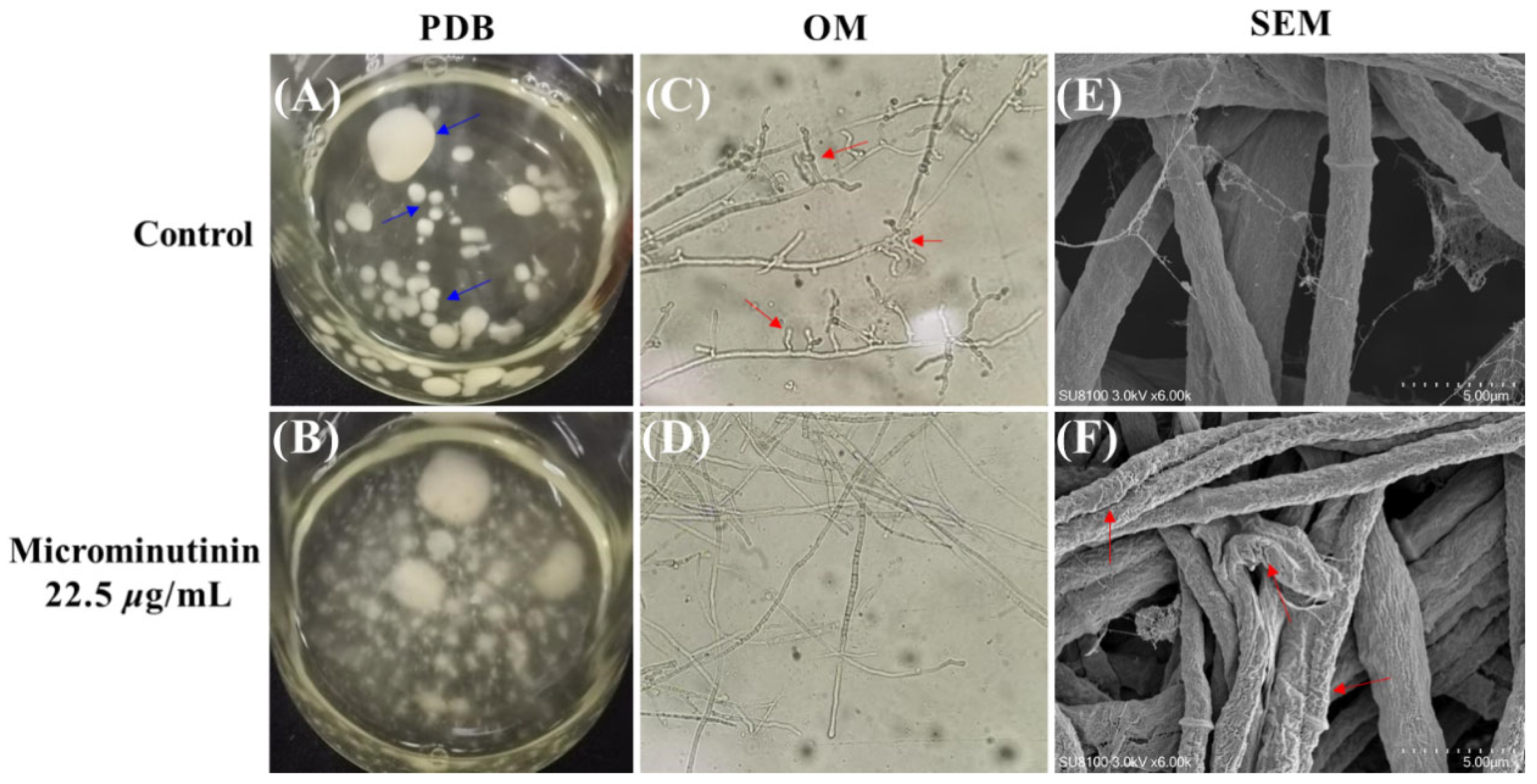 2.5. Effects of Microminutinin on the Mycelial Morphology of P. theae