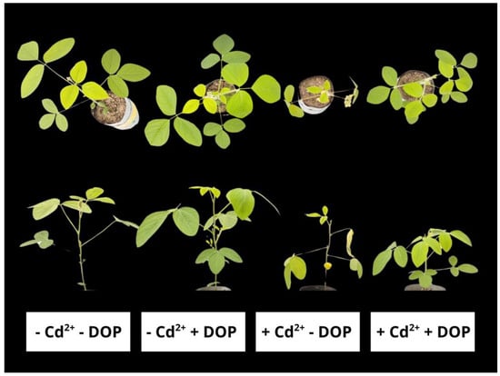 Upper and side views of soybean plants sprayed with DOP and Cd excess.