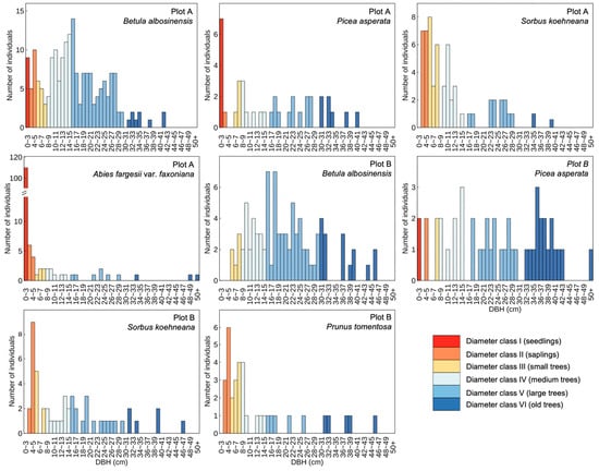 Diameter class structures of dominant tree species in subalpine secondary forests of western Sichuan, China.