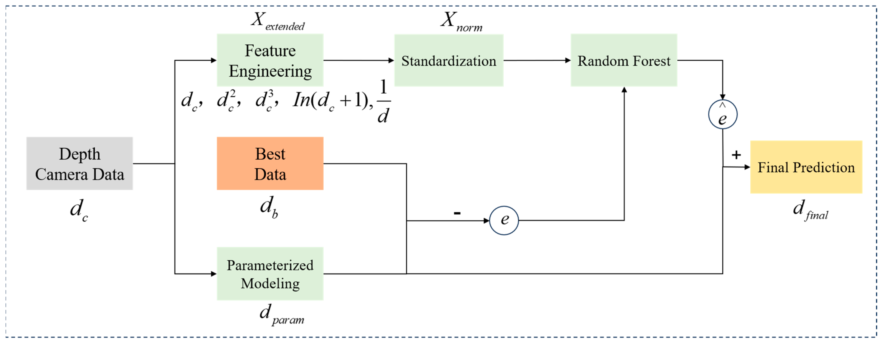- Final Corrected Model Depth. The final corrected depth is the sum of the parametric model prediction and the random forest residual prediction: