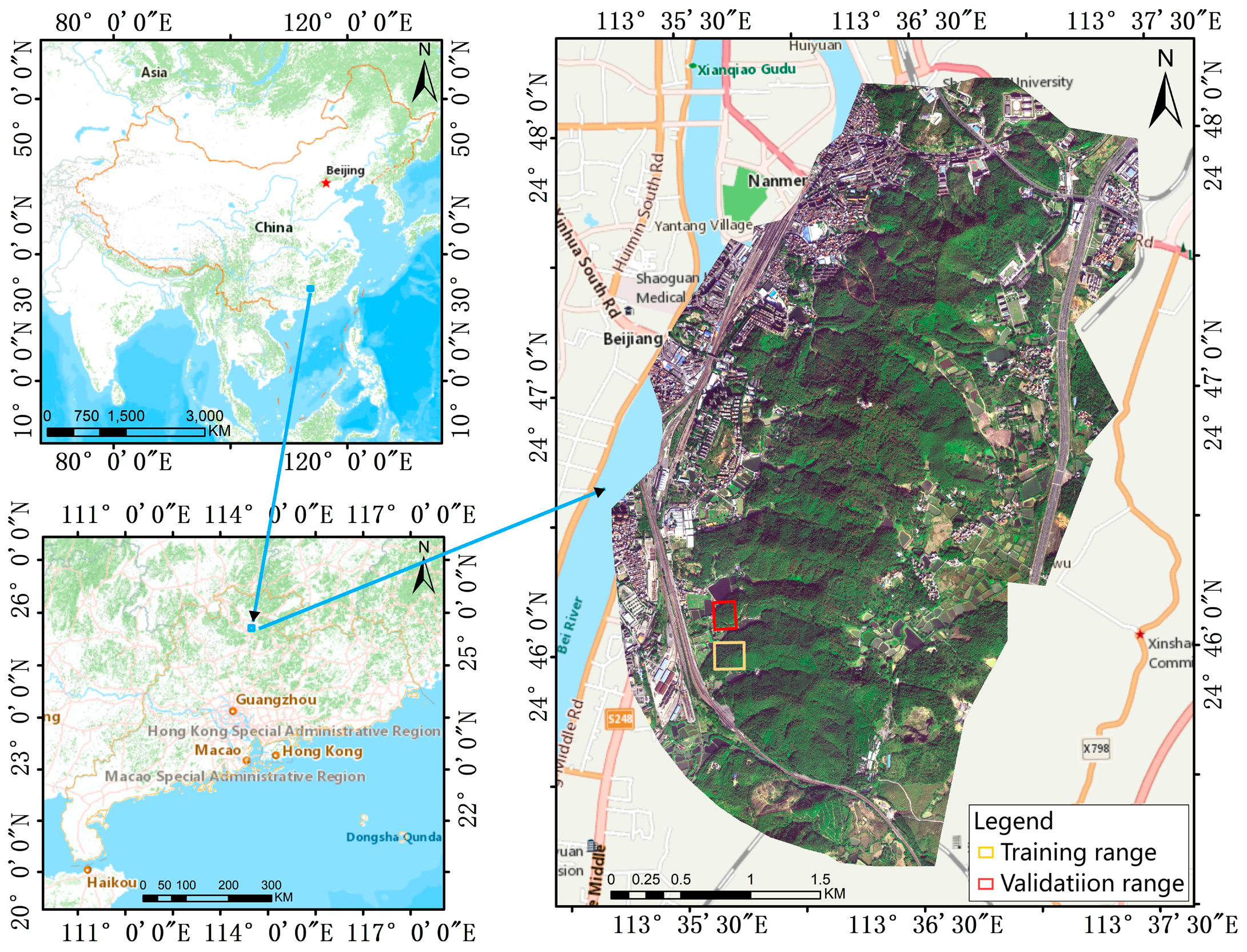- Zhang, Z.; Wang, B.; Chen, W.; Wu, Y.; Qin, J.; Chen, P.; Sun, H.; He, A. Recognition of Abnormal Individuals Based on Lightweight Deep Learning Using Aerial Images in Complex Forest Landscapes: A Case Study of Pine Wood Nematode. Remote Sens. 2023, 15, 1181. [Google Scholar] [CrossRef]