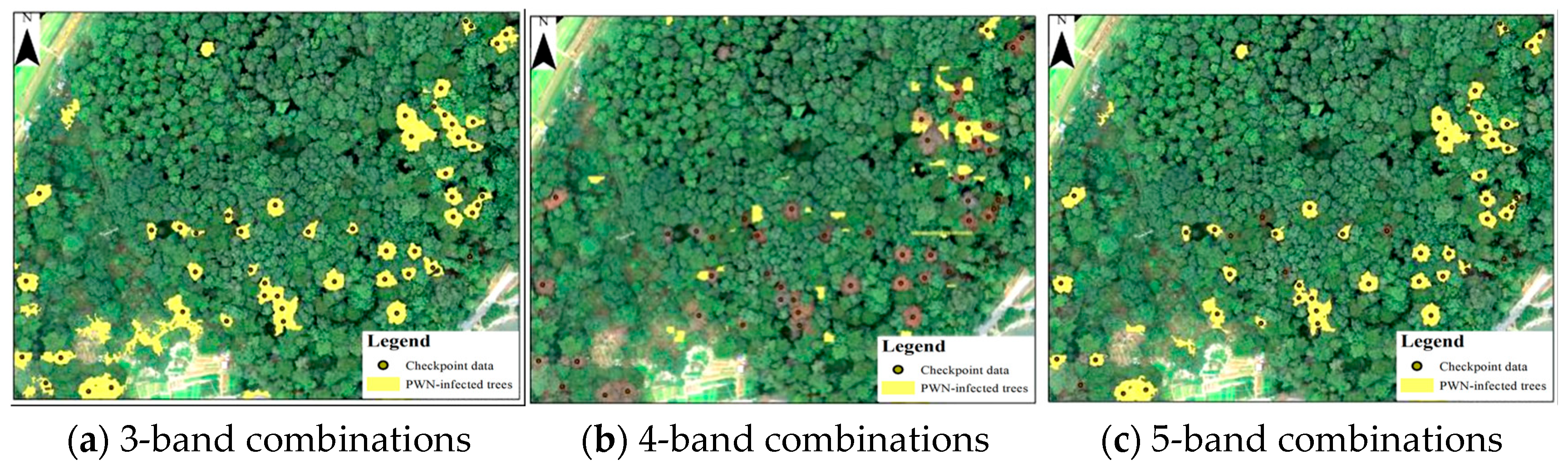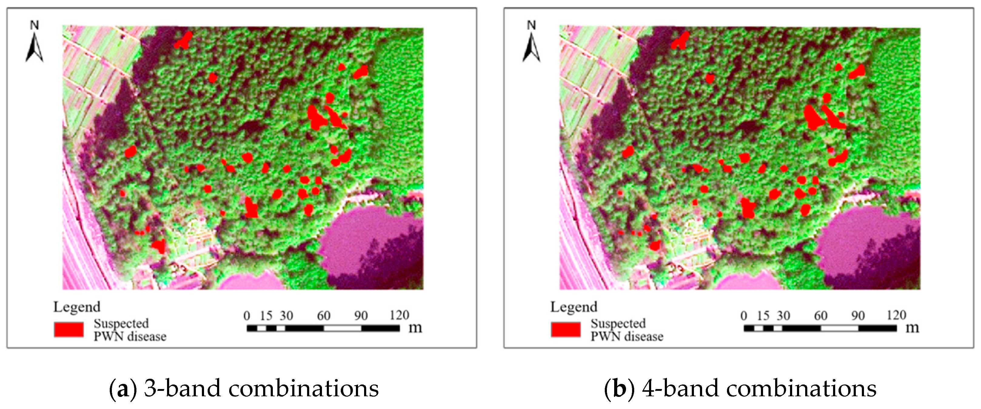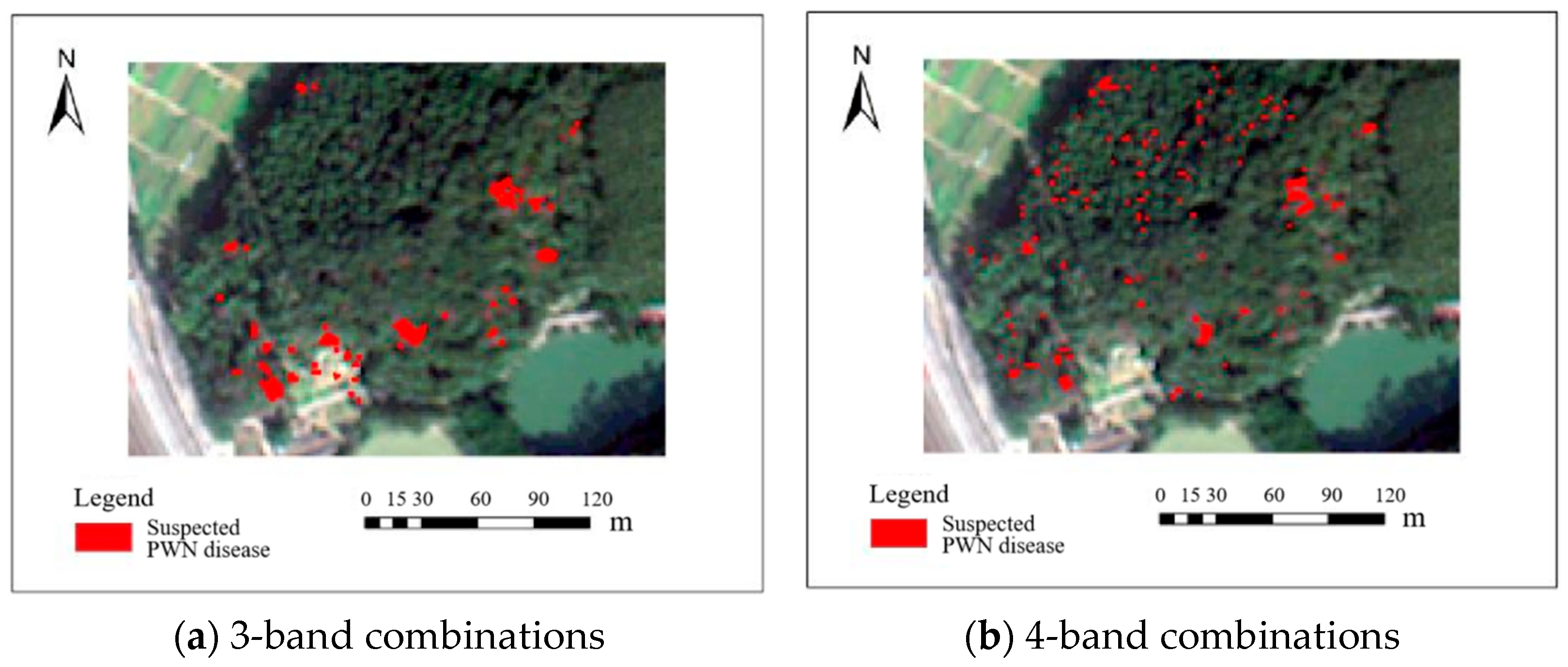 3.3. Identifying PWN-Infected Trees Using BJ3A Imagery