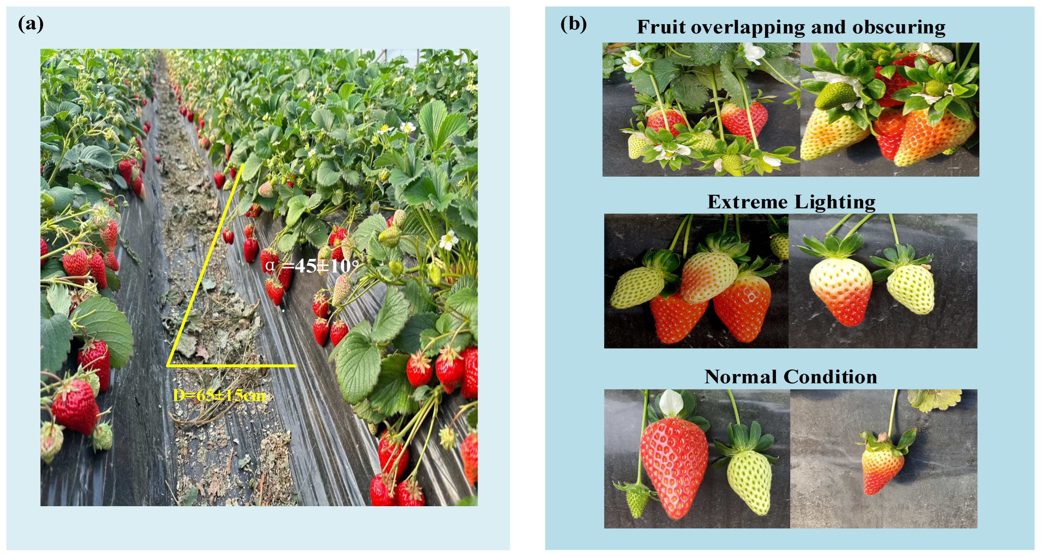 - Huang, J.; Zhao, X.; Gao, F. Recognizing and detecting the strawberry at multi-stages usingimprovedlightweight YOLOv5s. Trans. Chin. Soc. Agric. Eng. 2023, 39, 181–187. [Google Scholar]