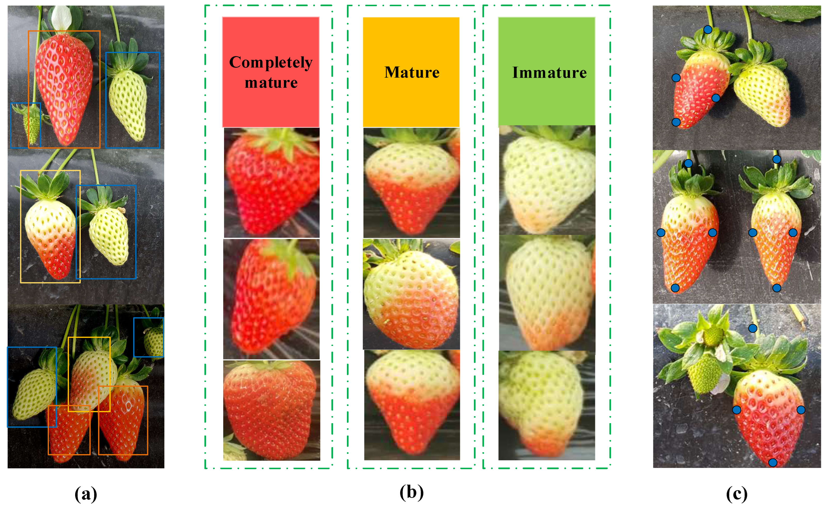 - Zhou, C.; Hu, J.; Xu, Z.; Yue, J.; Ye, H.; Yang, G. A novel greenhouse-based system for the detection and plumpness assessment of strawberry using an improved deep learning technique. Front. Plant Sci. 2020, 11, 559. [Google Scholar] [CrossRef] [PubMed]