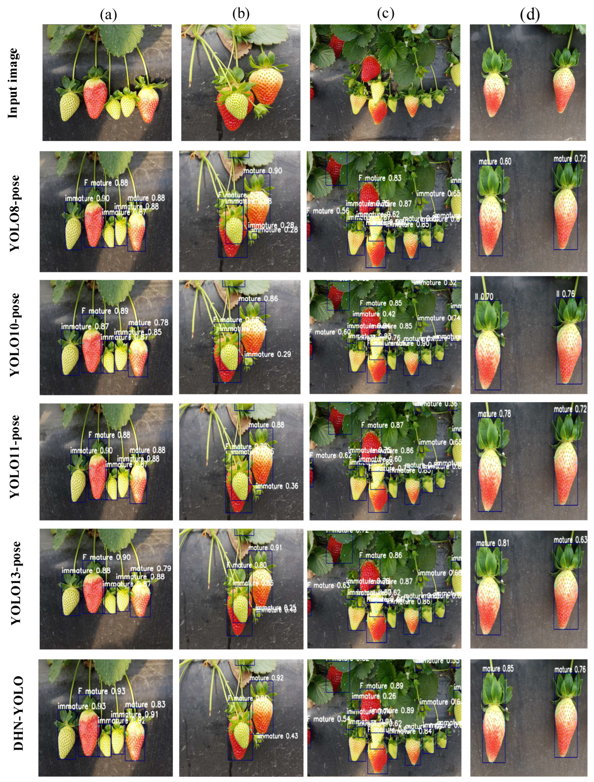 Hao, H.; Xi, J.; Dai, J.; Wang, G.; Liu, D.; Zhu, L. DHN-YOLO: A Joint Detection Algorithm for Strawberries at Different Maturity Stages and Key Harvesting Points. Plants 2025, 14, 3439. https://doi.org/10.3390/plants14223439
