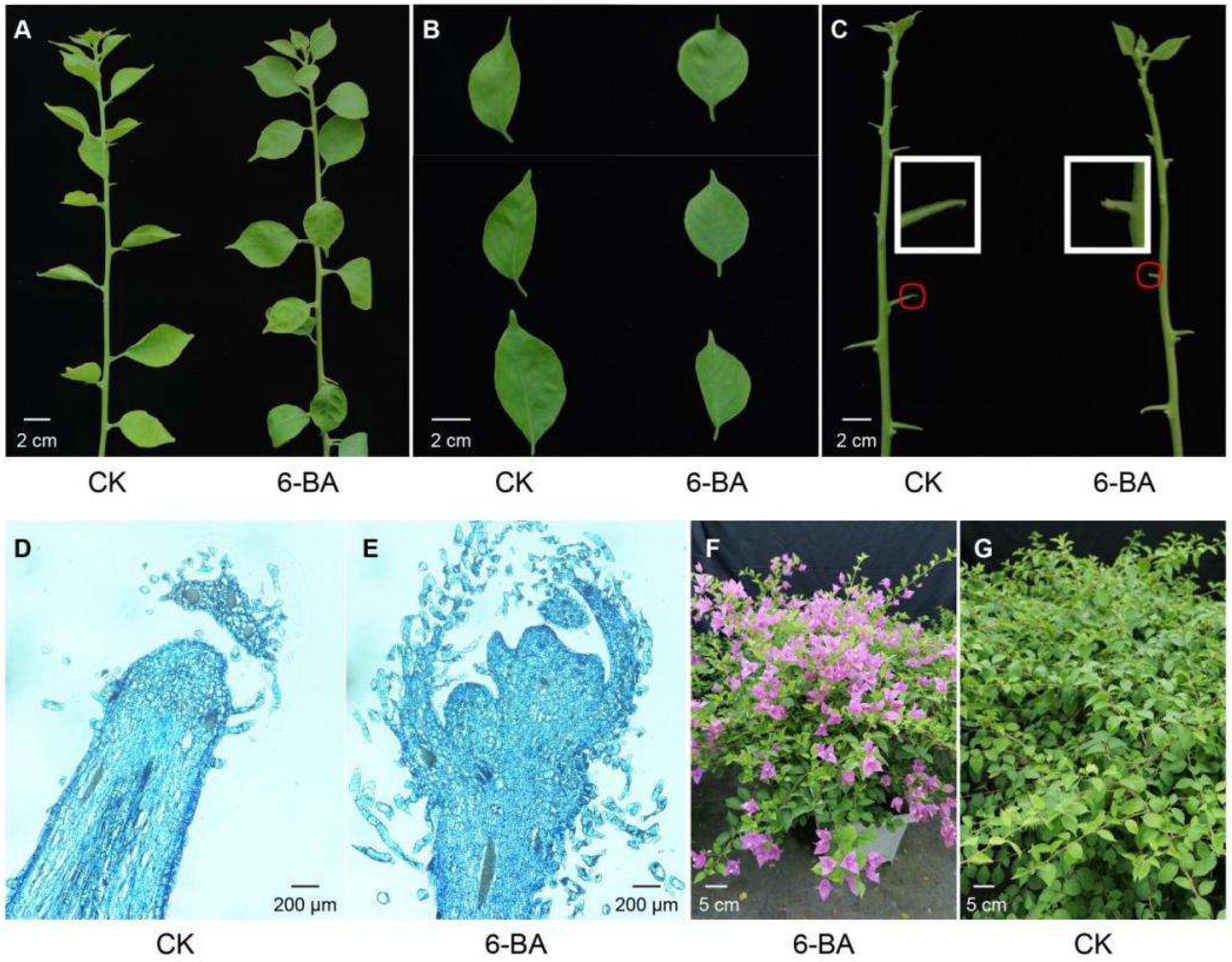 3.1. 6-BA Treatment Accelerates Florescence of Bougainvillea