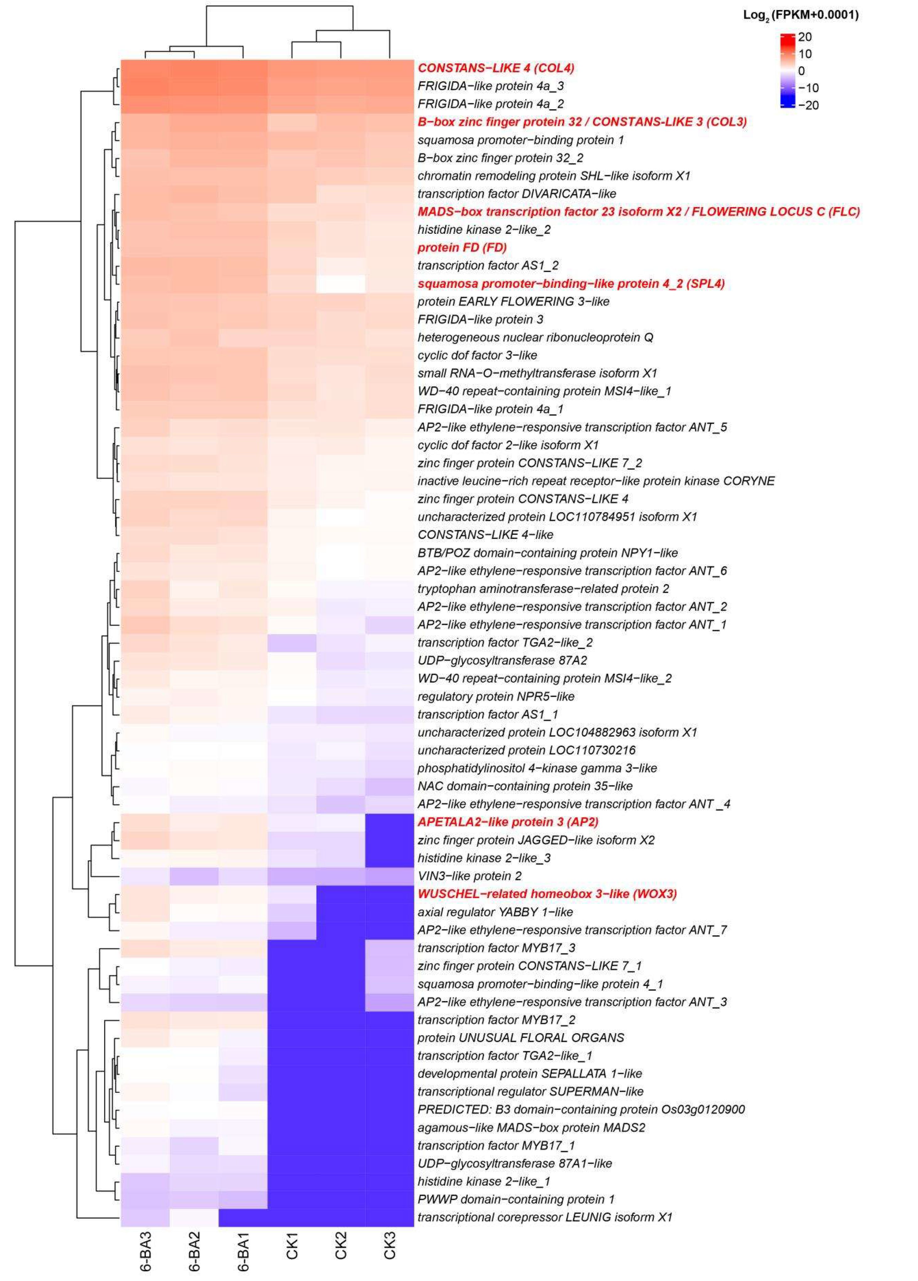 Chicago/Turabian StyleLin, Xinggu, Hong Chen, Miaomiao Sun, Xuelin Du, Sixian Zeng, Beiyi Guo, Seping Dai, and Guofeng Liu. 2025. "Comparative Transcriptome Analysis Provides Insight into the Effect of 6-BA on Flower Development and Flowering in Bougainvillea" Plants 14, no. 22: 3442. https://doi.org/10.3390/plants14223442