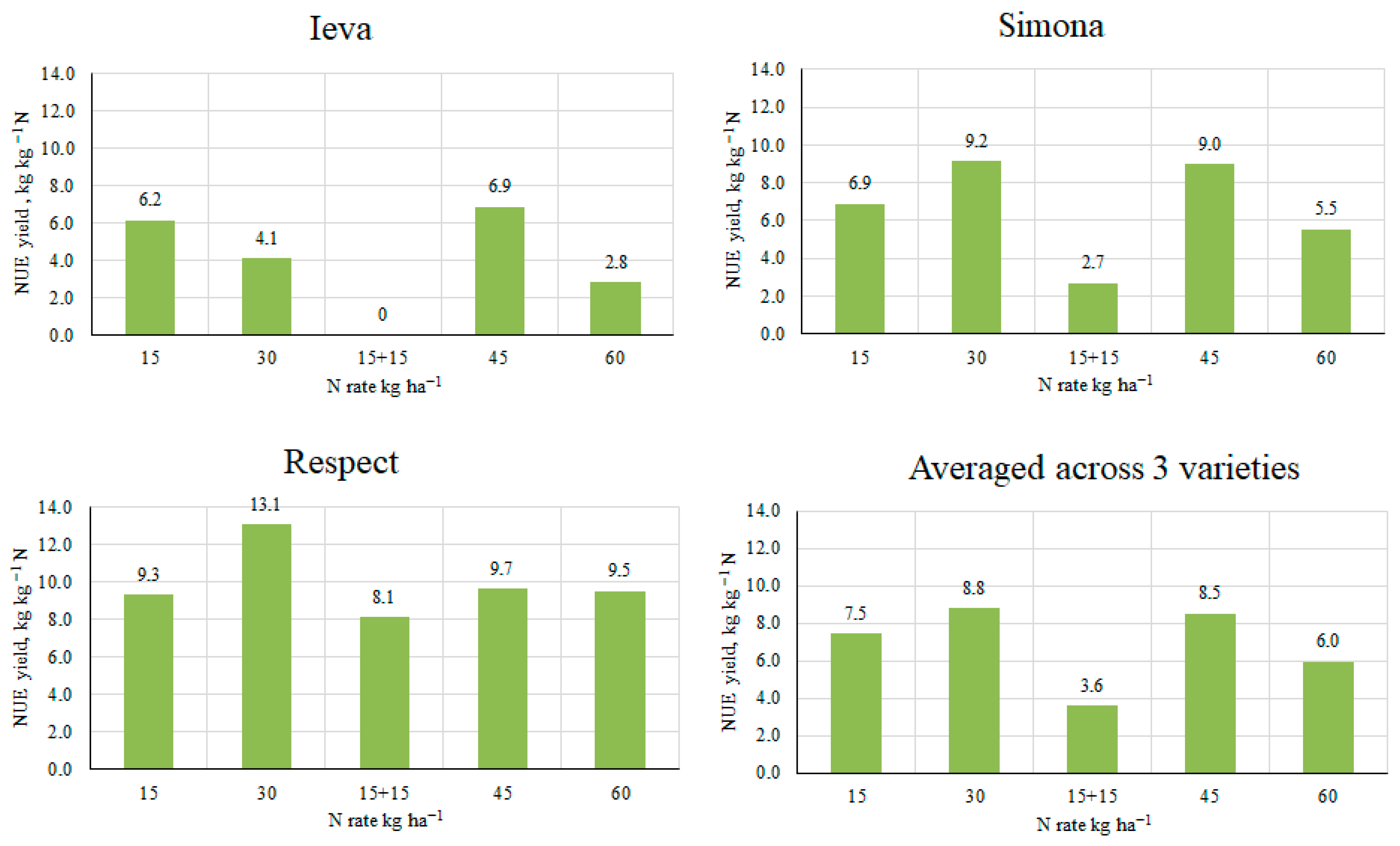 2.6. Agronomic Nitrogen Use Efficiency (NUE) in Pea