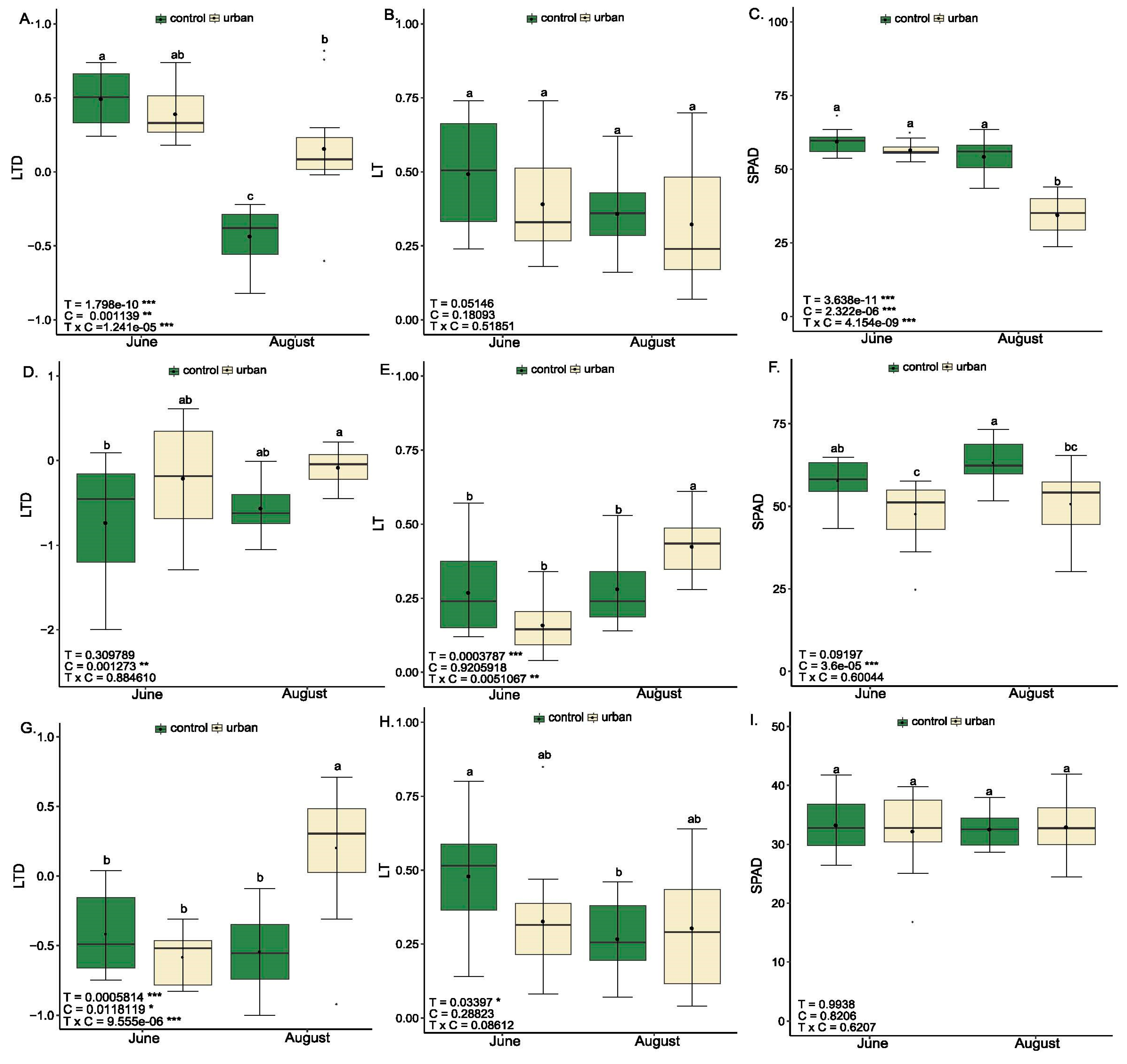 | August | control | 0.586 ± 0.00 b | 0.189 ± 0.00 b | 0.233 ± 0.01 a | 0.711 ± 0.01 b | 176.104 ± 16.91 b | 0.046 ± 0.00 a | 15.595 ± 1.07 a | 0.573 ± 0.01 a |