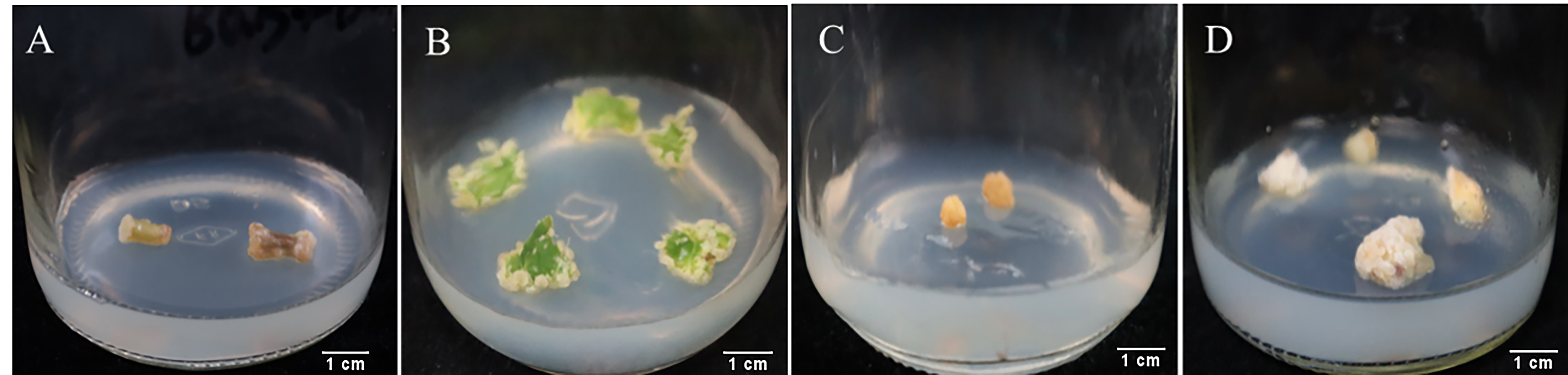 2.1. Effect of Different Explants and Plant Hormones on Callus Induction