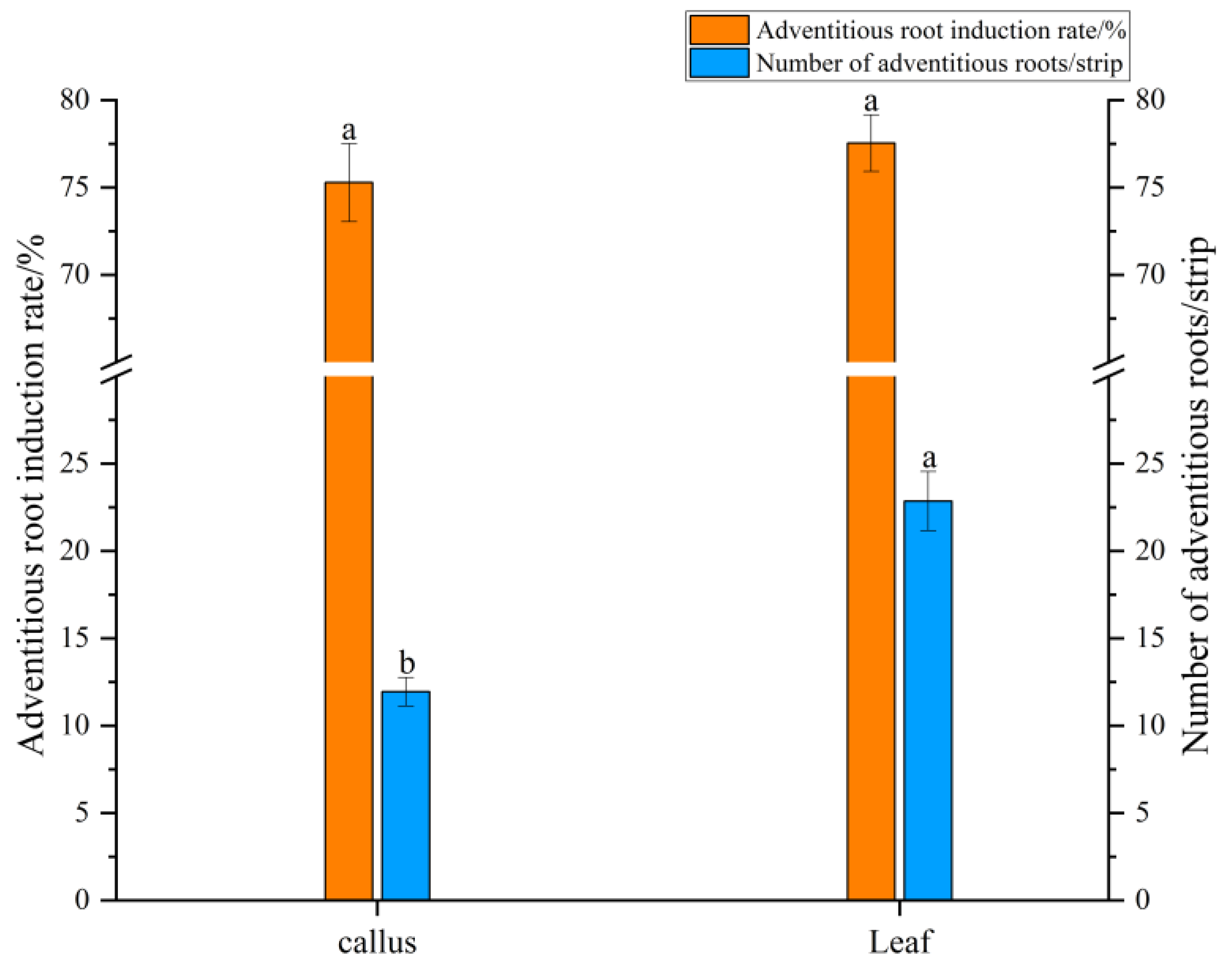 - Dry weight: The fresh weight of adventitious roots was dried in a 55 °C oven to a constant weight (approximately 2 days) and then weighed to obtain dry weight.