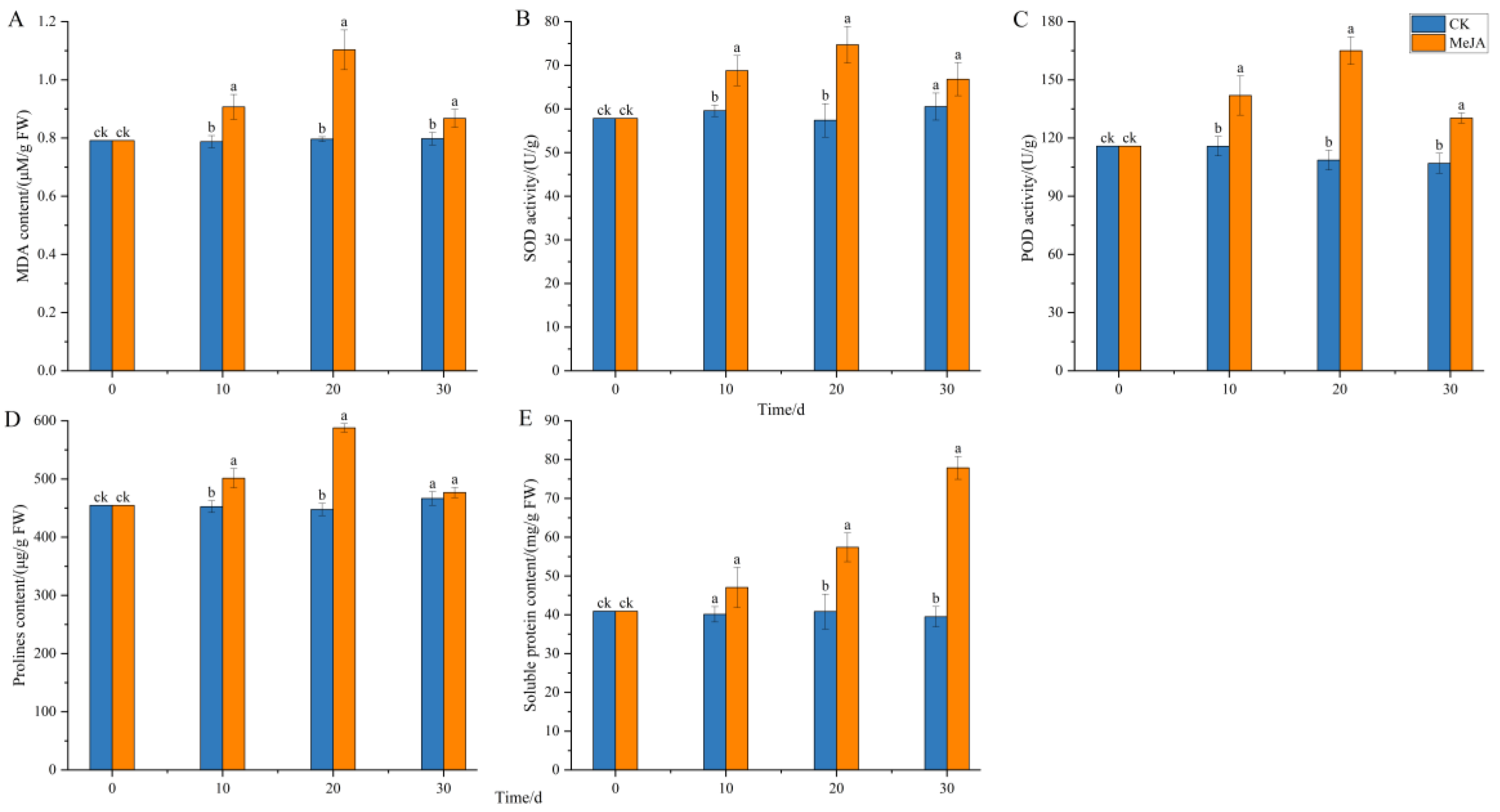 2.6. Effect of Methyl Jasmonate on Physiological Indicators of Adventitious Roots