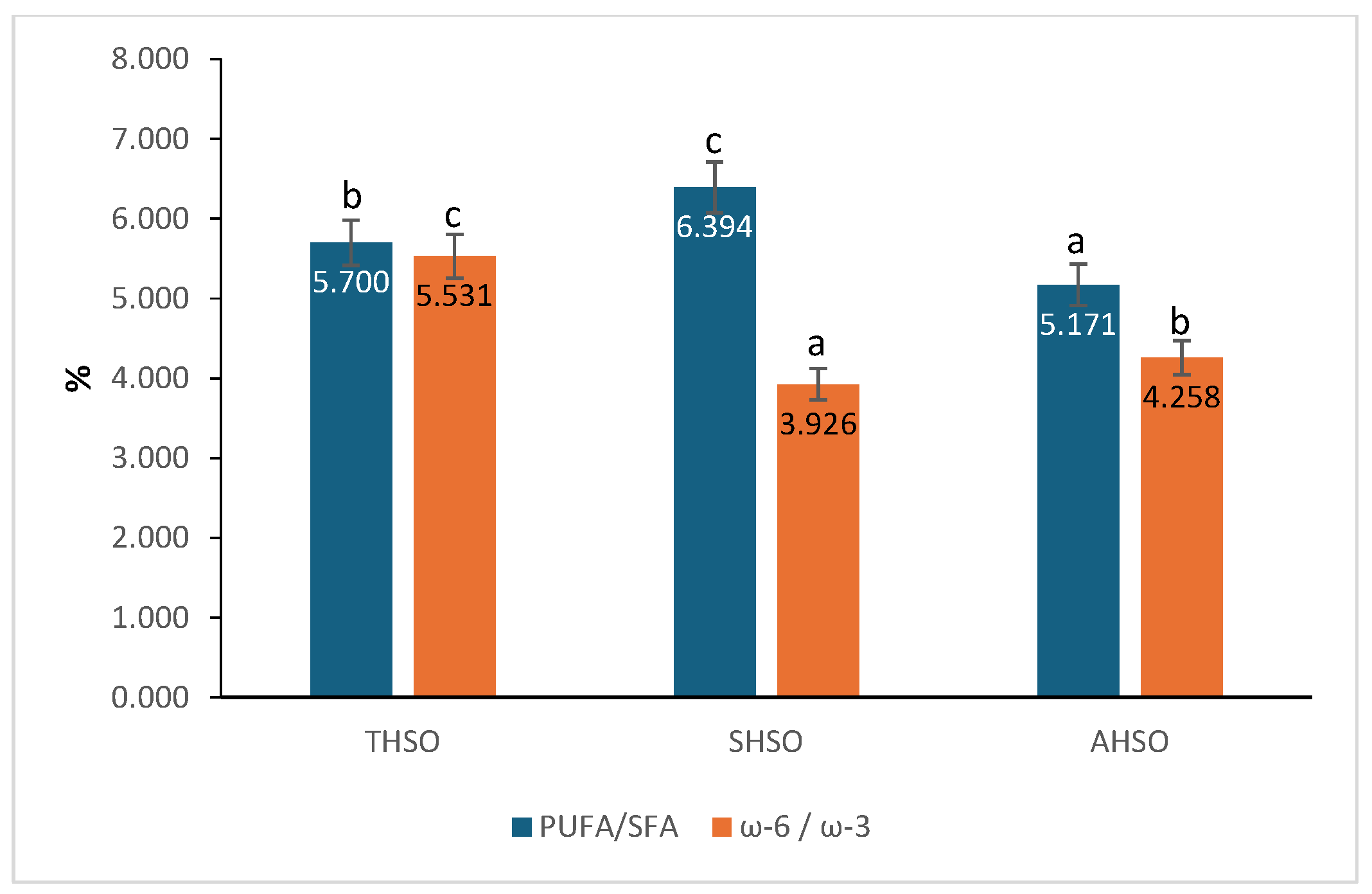 | ω-6 | 54.486 ± 0.263 b | 56.388 ± 0.061 c | 53.656 ± 0.037 a |