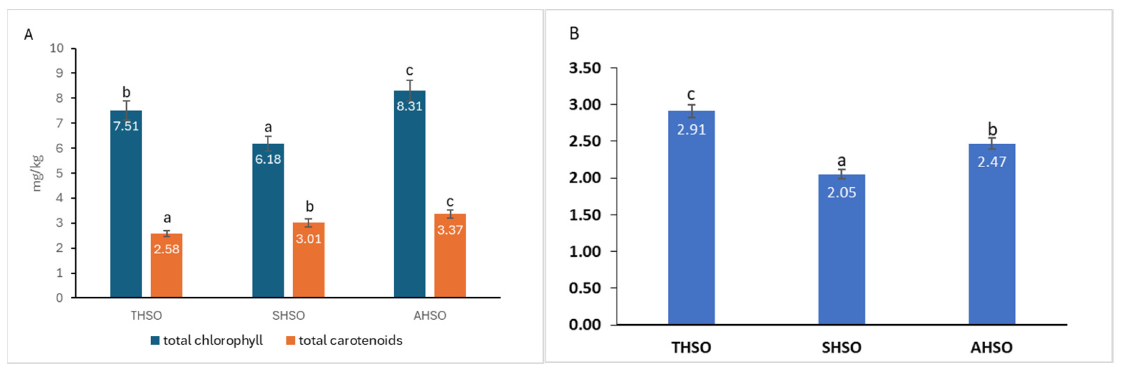 2.3. Total Chlorophylls and Carotenoids Content of Hemp Seed Oil