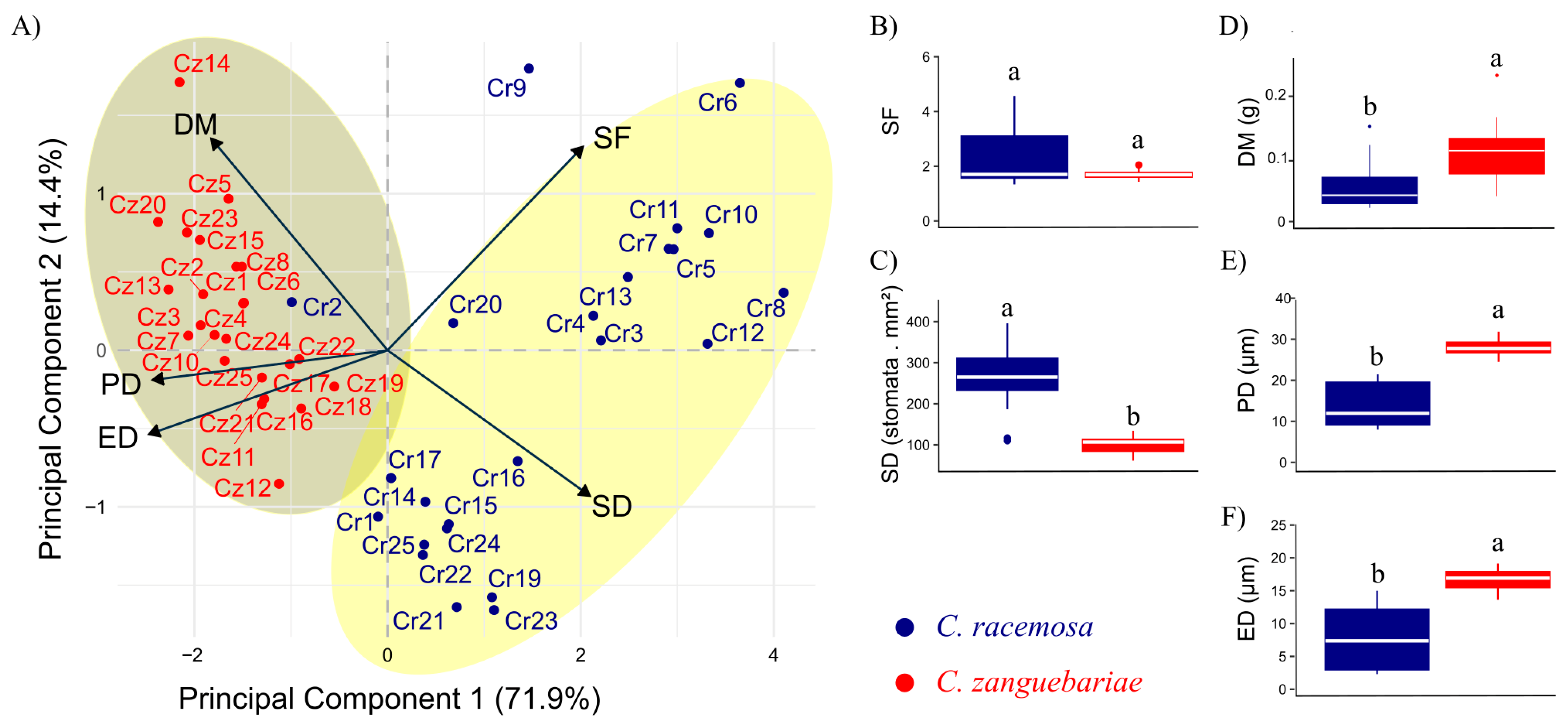 | C. racemosa | C. zanguebariae | |||||||