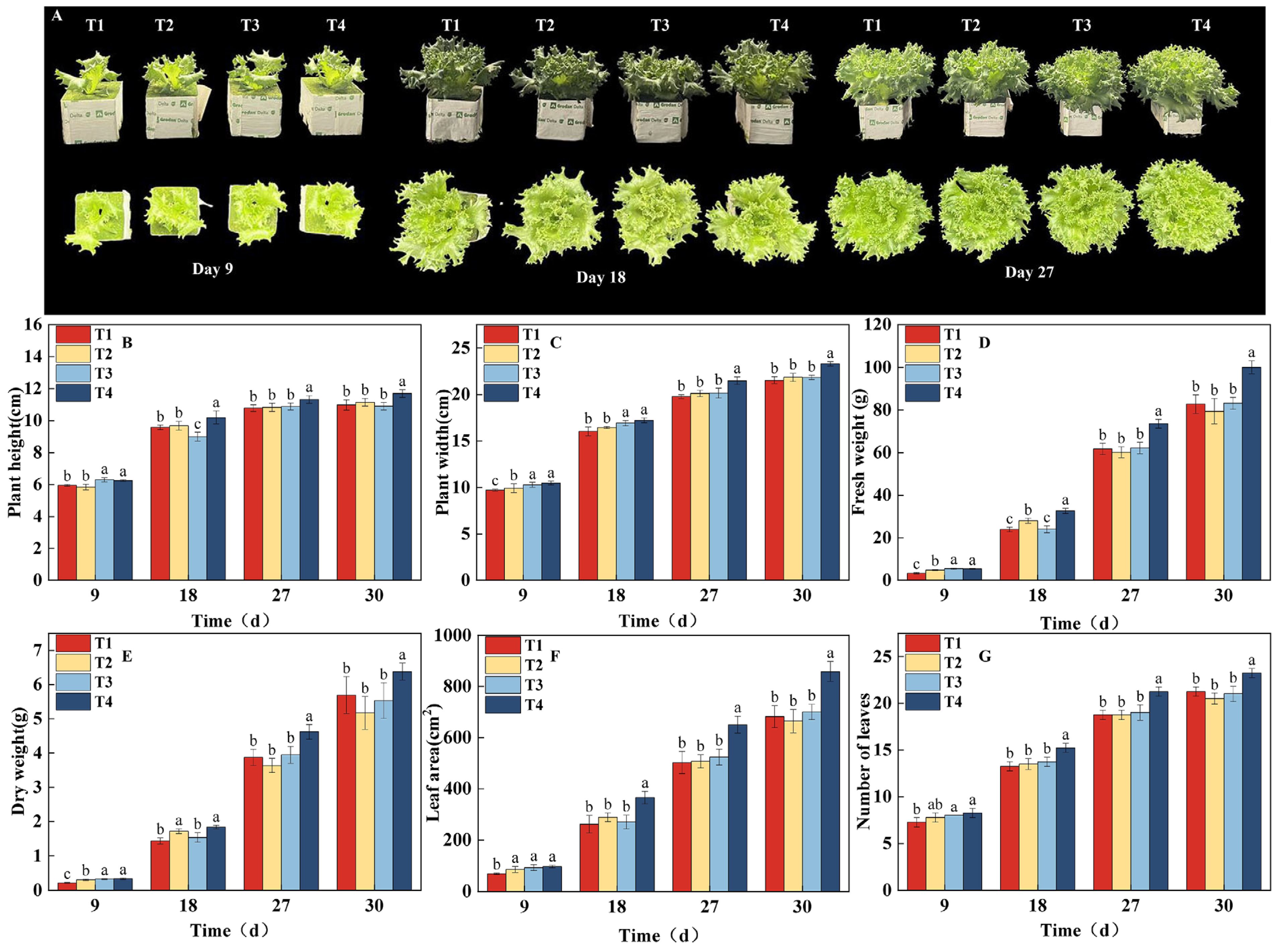 2.1. Effects of Different Treatments on Lettuce Growth and Development Under the Same CLI