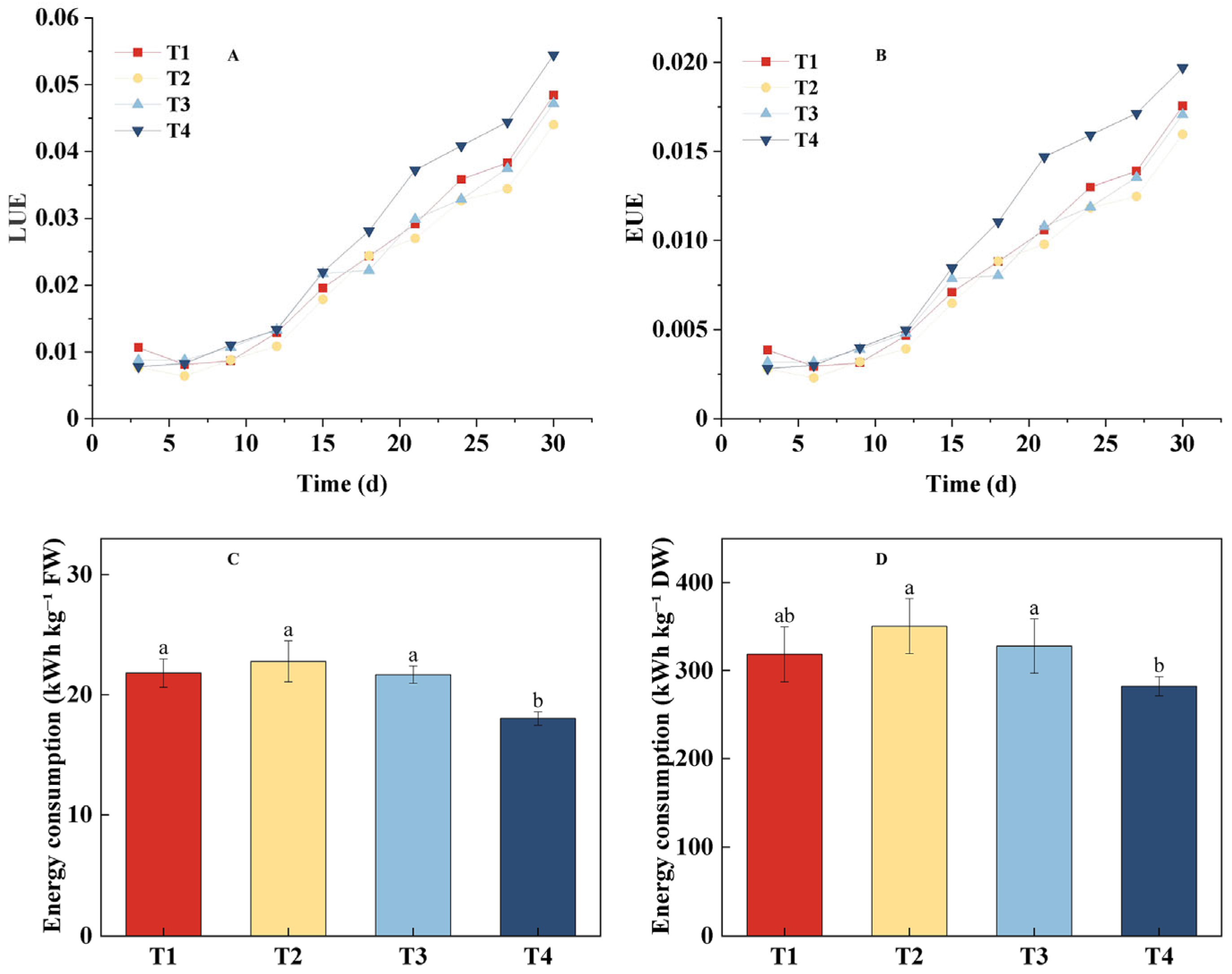 4.5. Calculation of Energy Use Efficiency and Light Integral