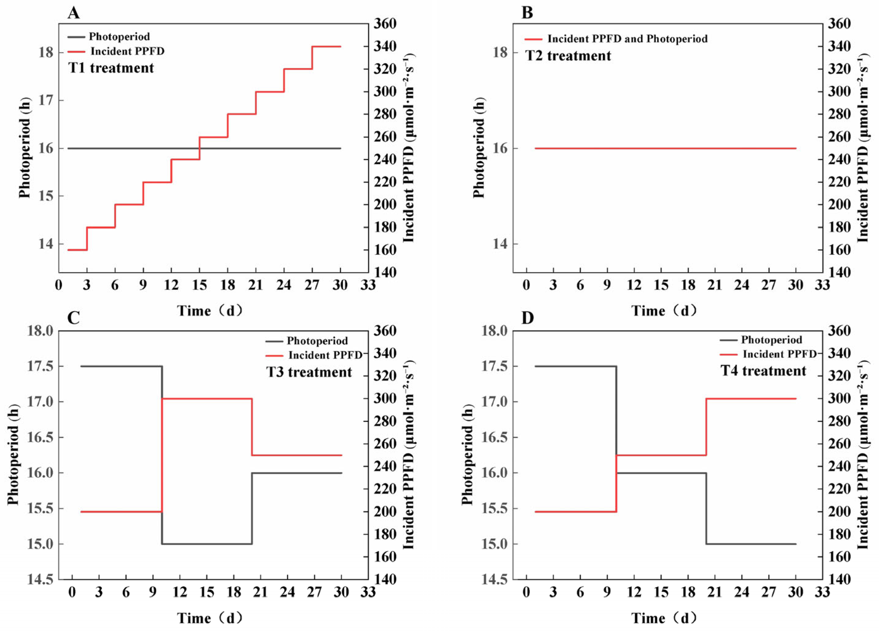 | Stage III: Yield Maximization (Days 21–30 until harvest) | 300 ± 5 | 15 | Objective: To maximize the synthesis and accumulation of photosynthetic assimilates. Outcome: Achieves the highest fresh weight yield, while the reduced photoperiod partially offsets the increased energy consumption from higher PPFD. |