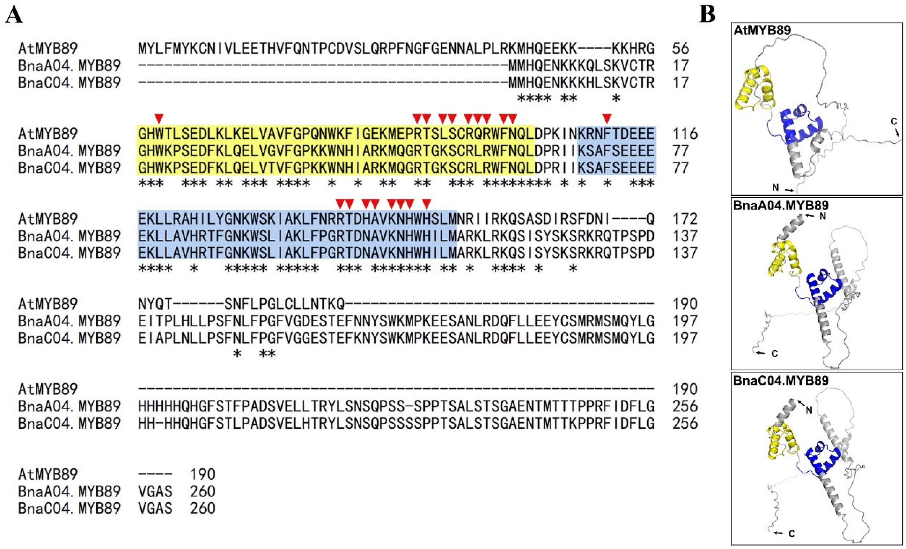 3.1. BnaC04.MYB89 Shares Conserved MYB-like DNA-Binding Domains and 3D Structures with Other MYB89 Genes
