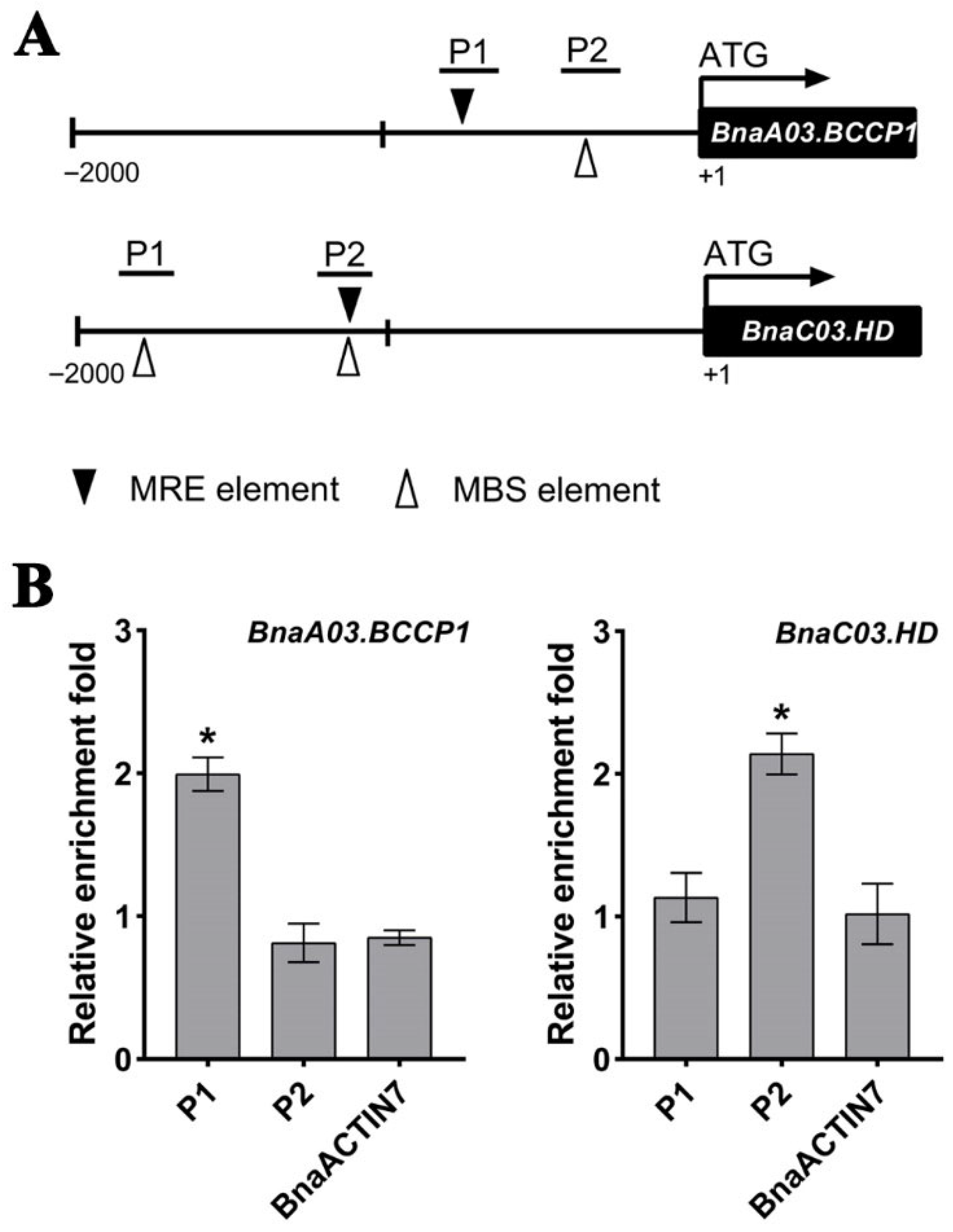3.6. BnaC04.MYB89 Binds to BnaA03.BCCP1 and BnaC03.HD Promoters
