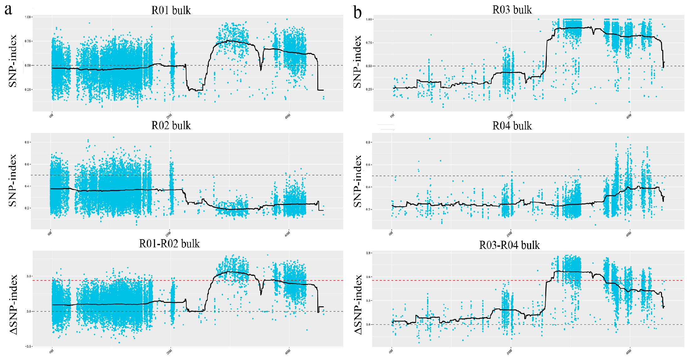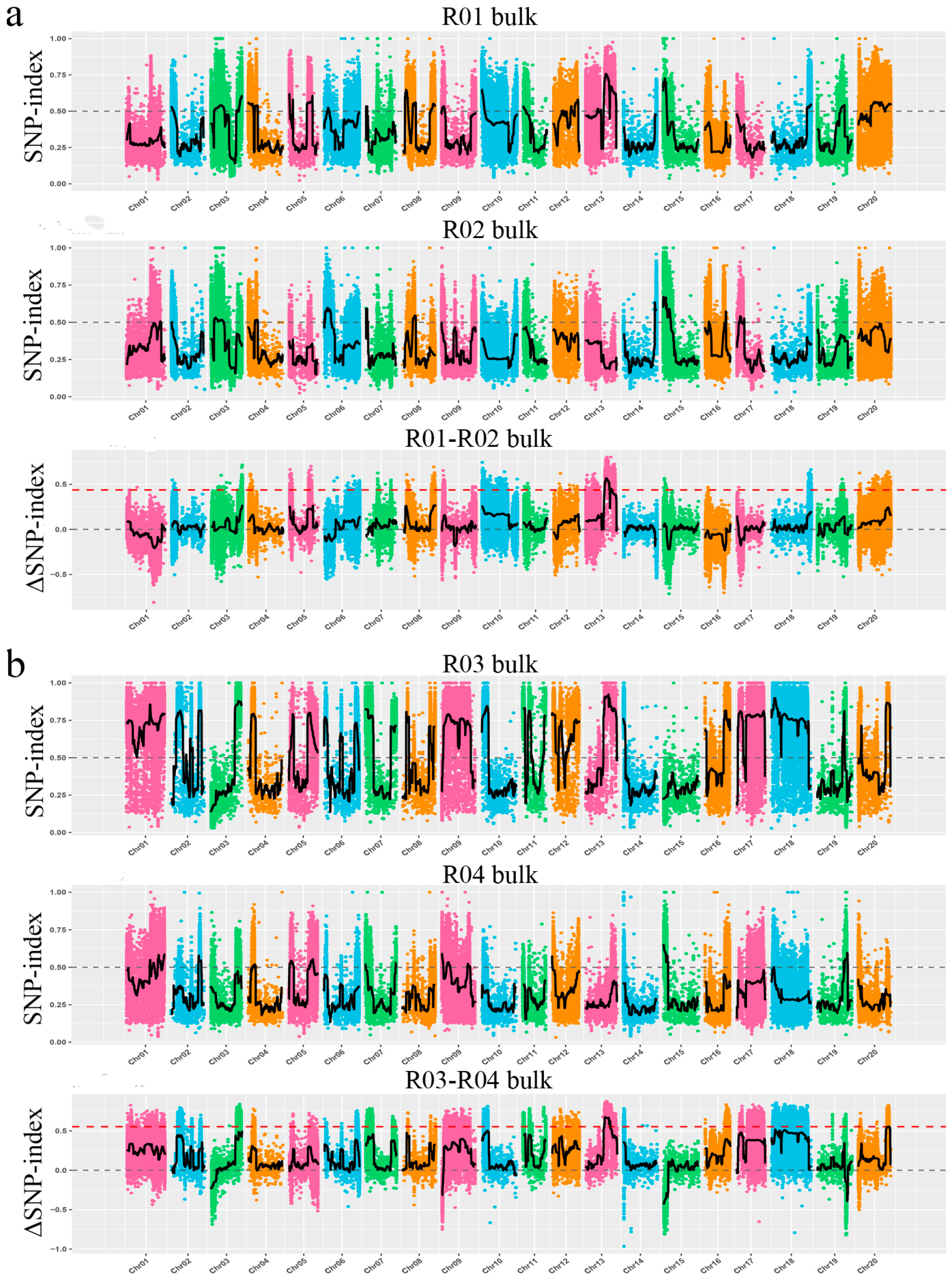 4.4. Genetic Mapping and Bulked Segregant Analysis (BSA)