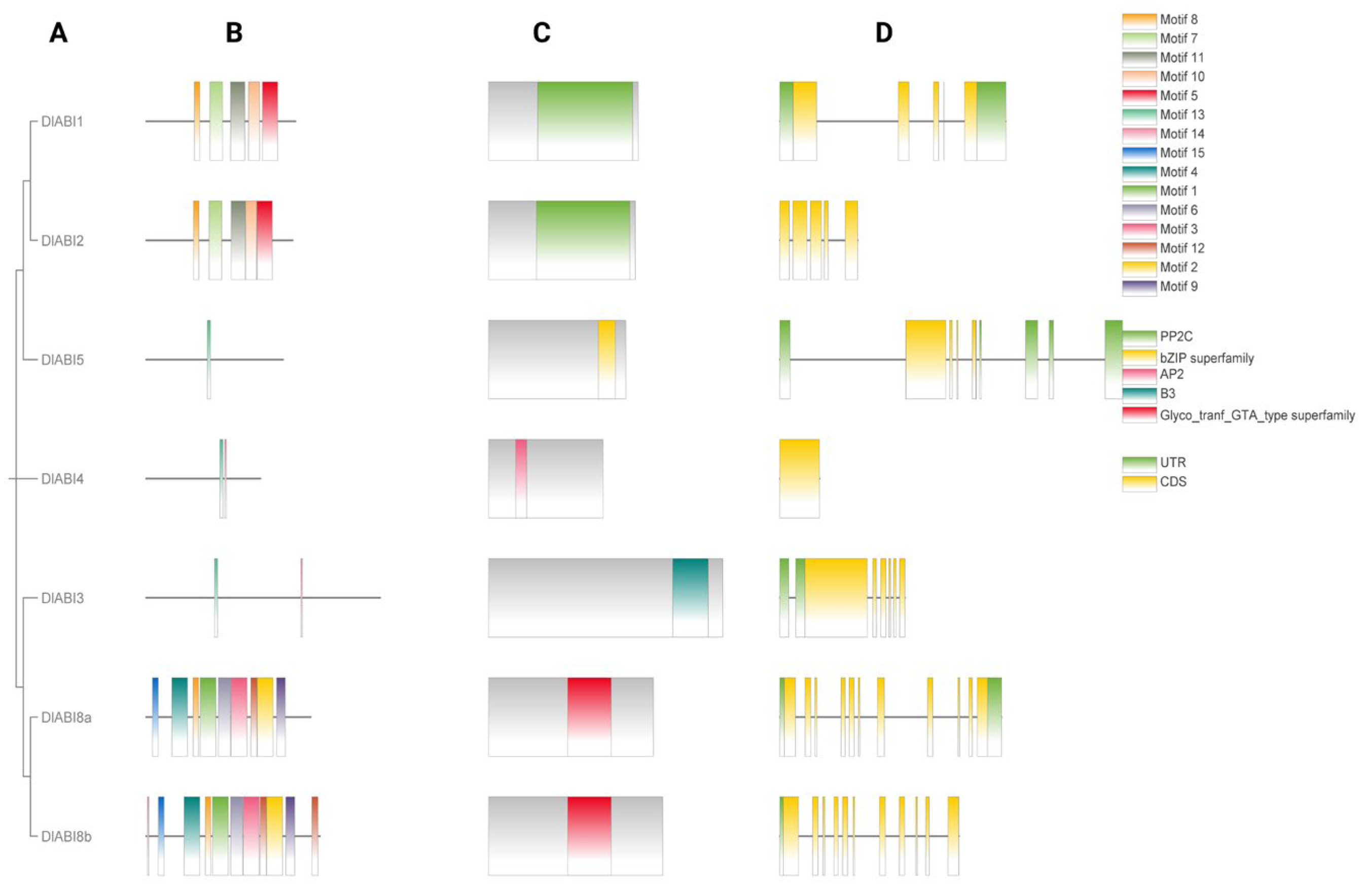 4.3. Domain Analysis and Gene Structure View of DlABI Genes
