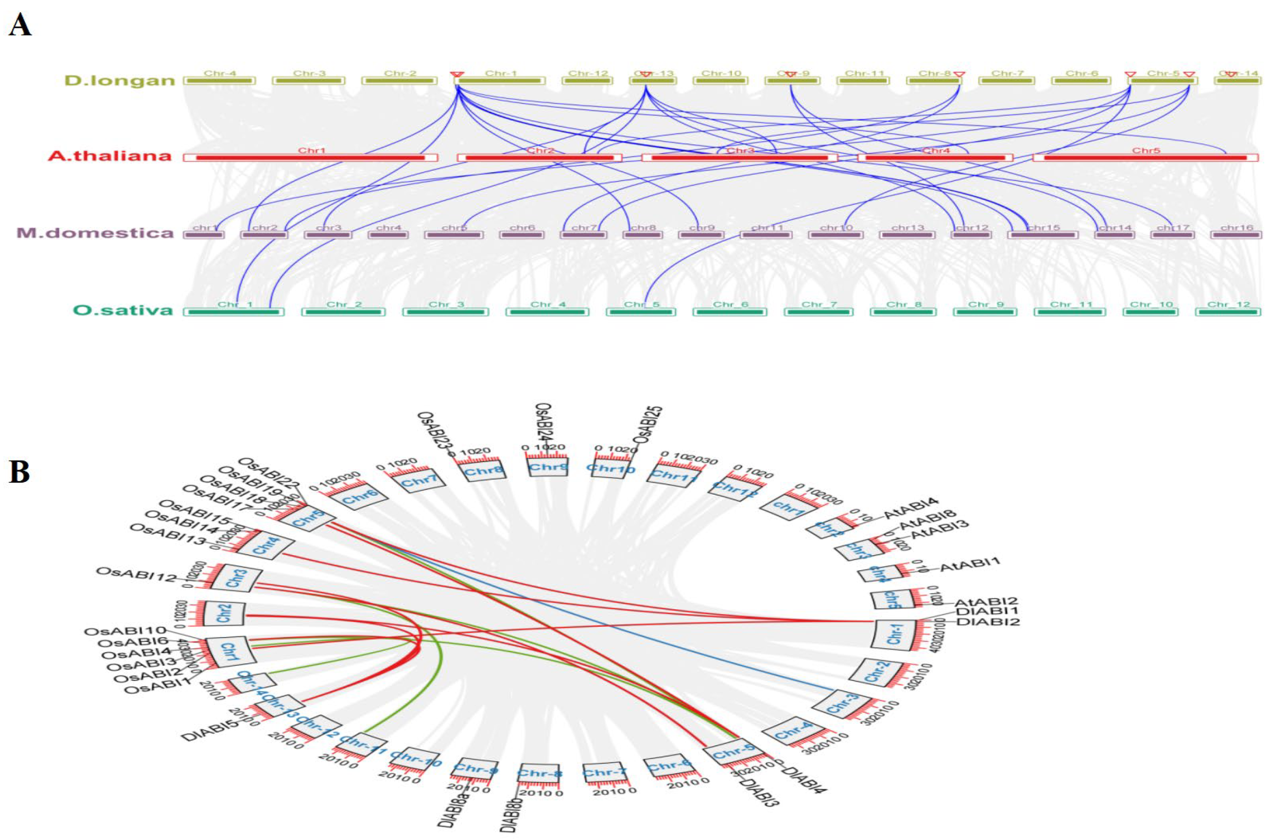 2.5. Synteny Analysis and Chromosomal Duplication of DlABI Genes