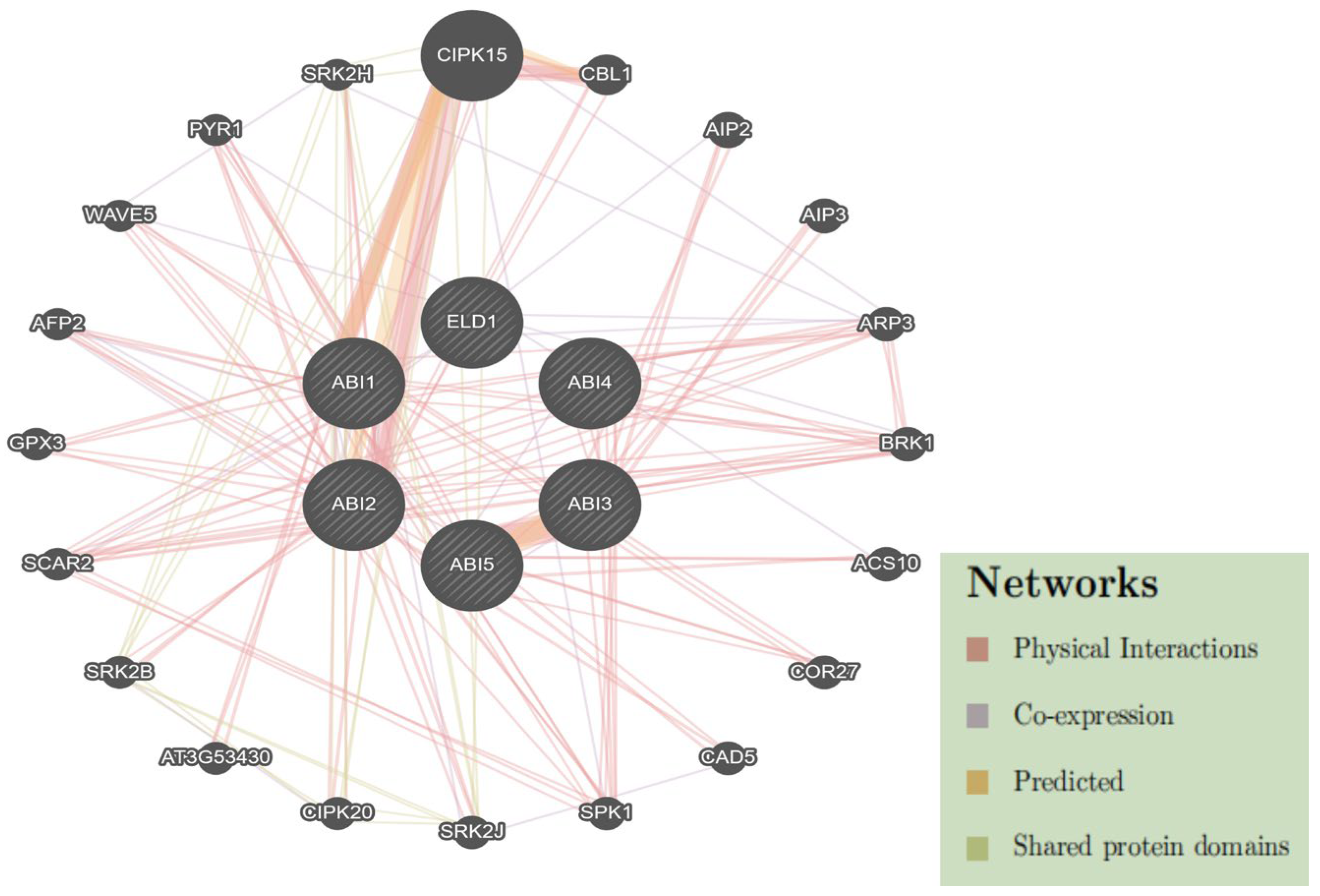 2.6. Protein–Protein Interaction Network of DlABI Genes