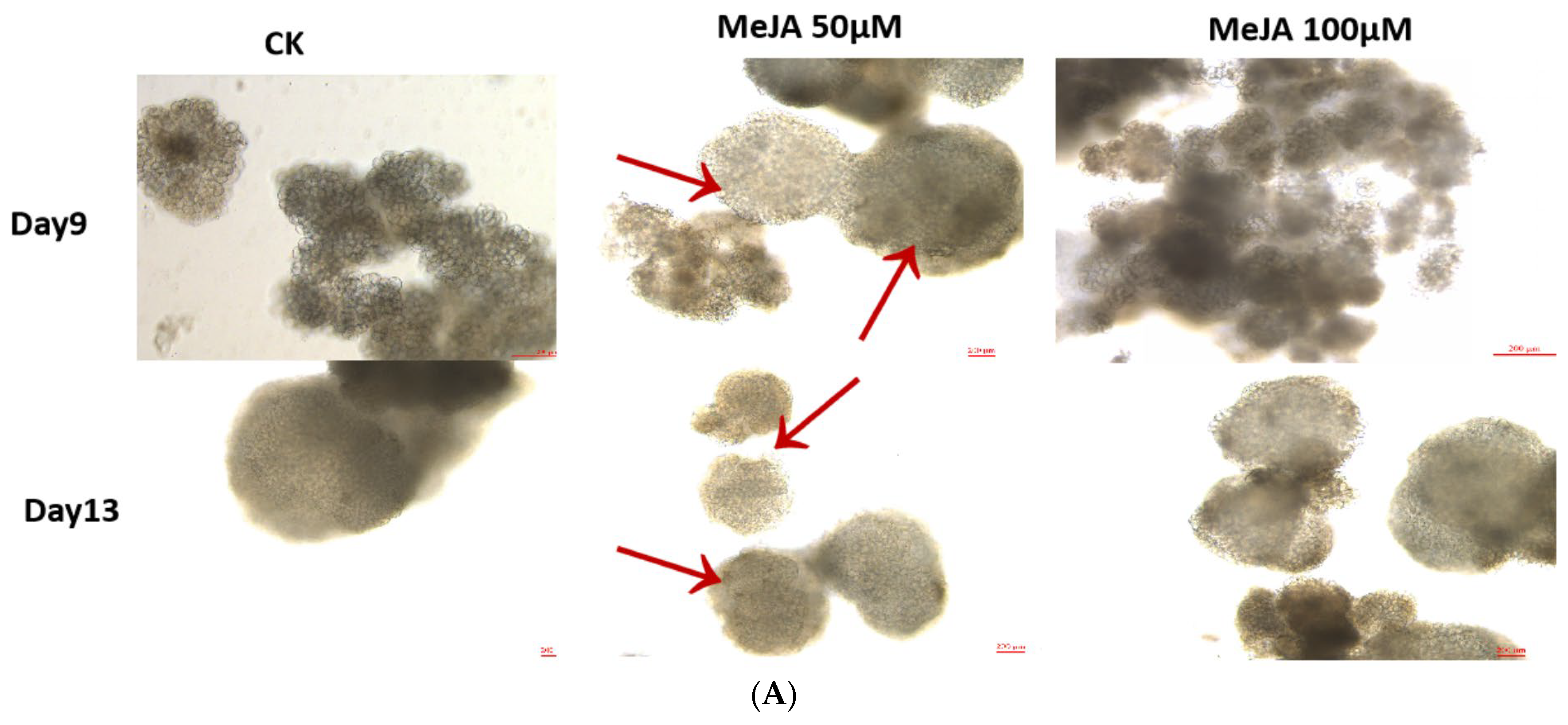 - Kamińska, M. Role and Activity of Jasmonates in Plants under in Vitro Conditions. Plant Cell Tissue Organ Cult. (PCTOC) 2021, 146, 425–447. [Google Scholar] [CrossRef]