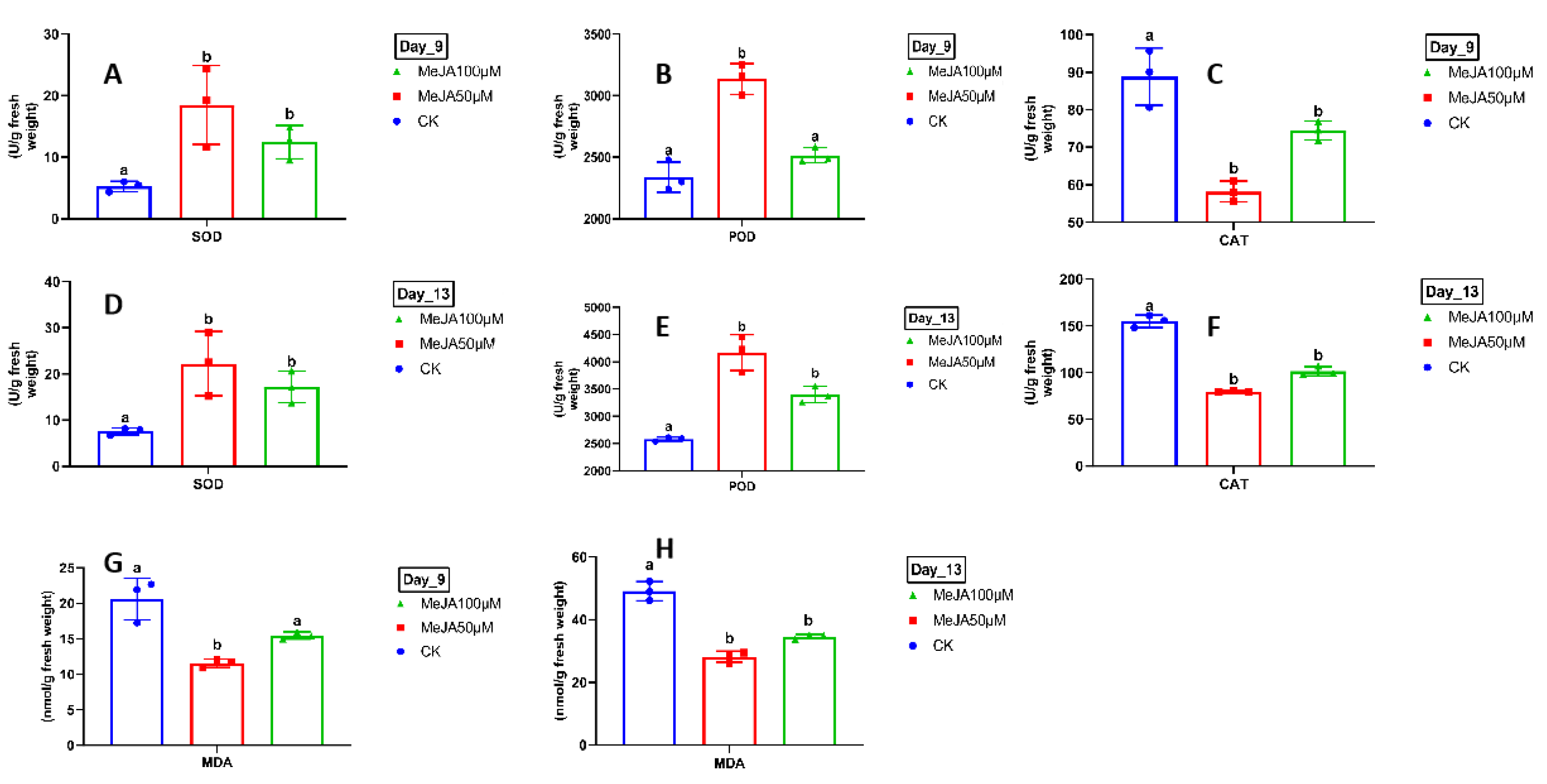 - Wang, J.; Song, L.; Gong, X.; Xu, J.; Li, M. Functions of Jasmonic Acid in Plant Regulation and Response to Abiotic Stress. Int. J. Mol. Sci. 2020, 21, 1446. [Google Scholar] [CrossRef] [PubMed]