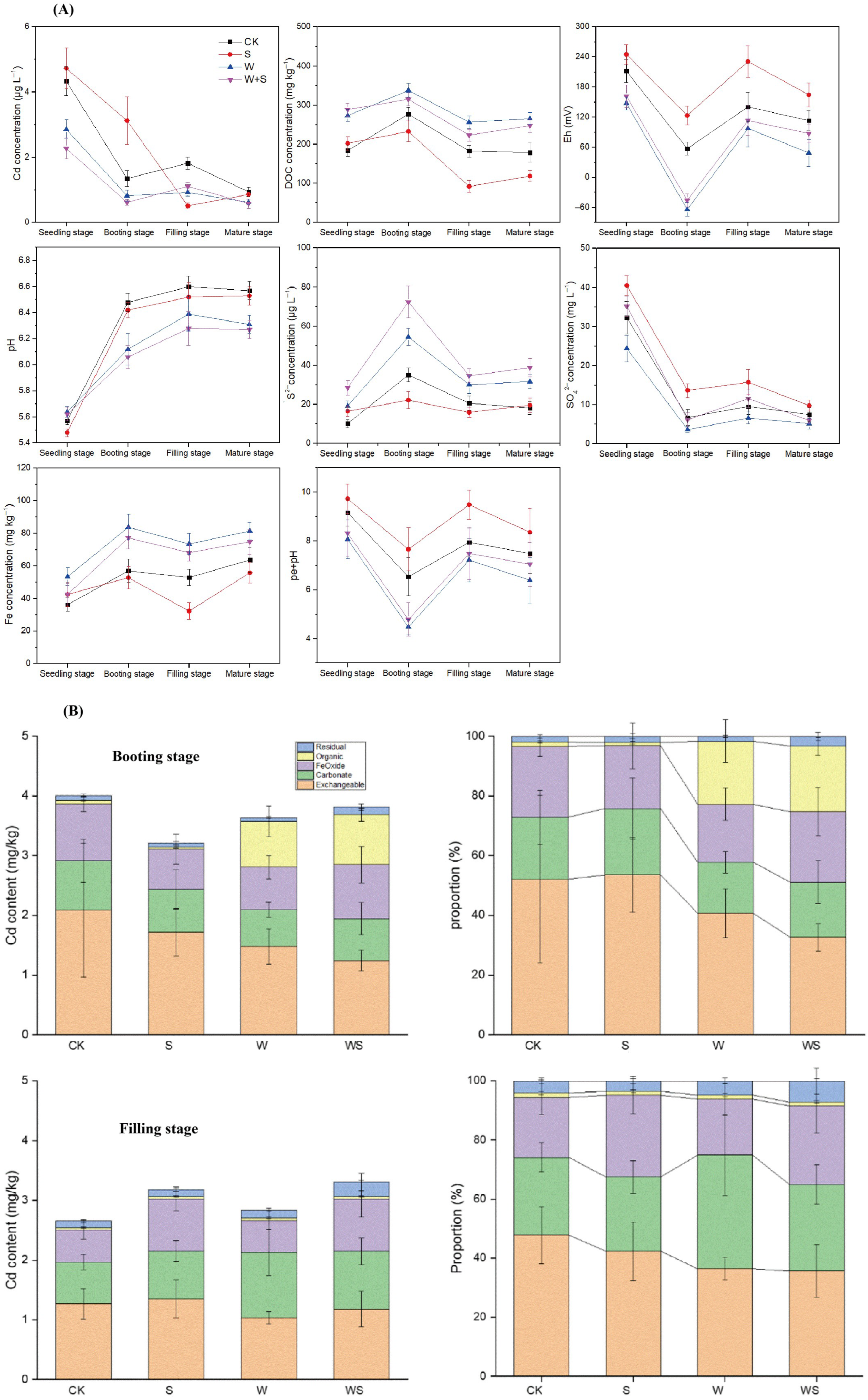 4.1. Effect of Sulfur on the Cd Availability Under Straw Amendment During Rice Growth