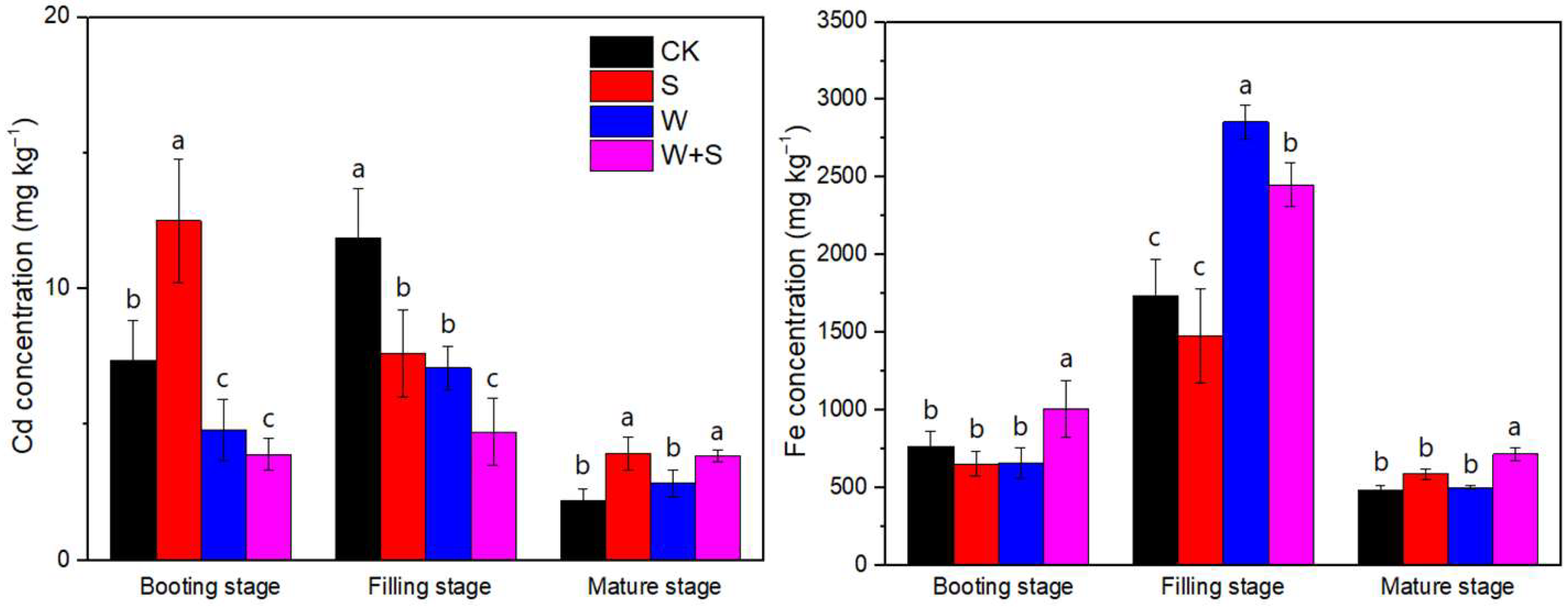 3.3. Cd and Fe in Iron Plaque of Root Surface