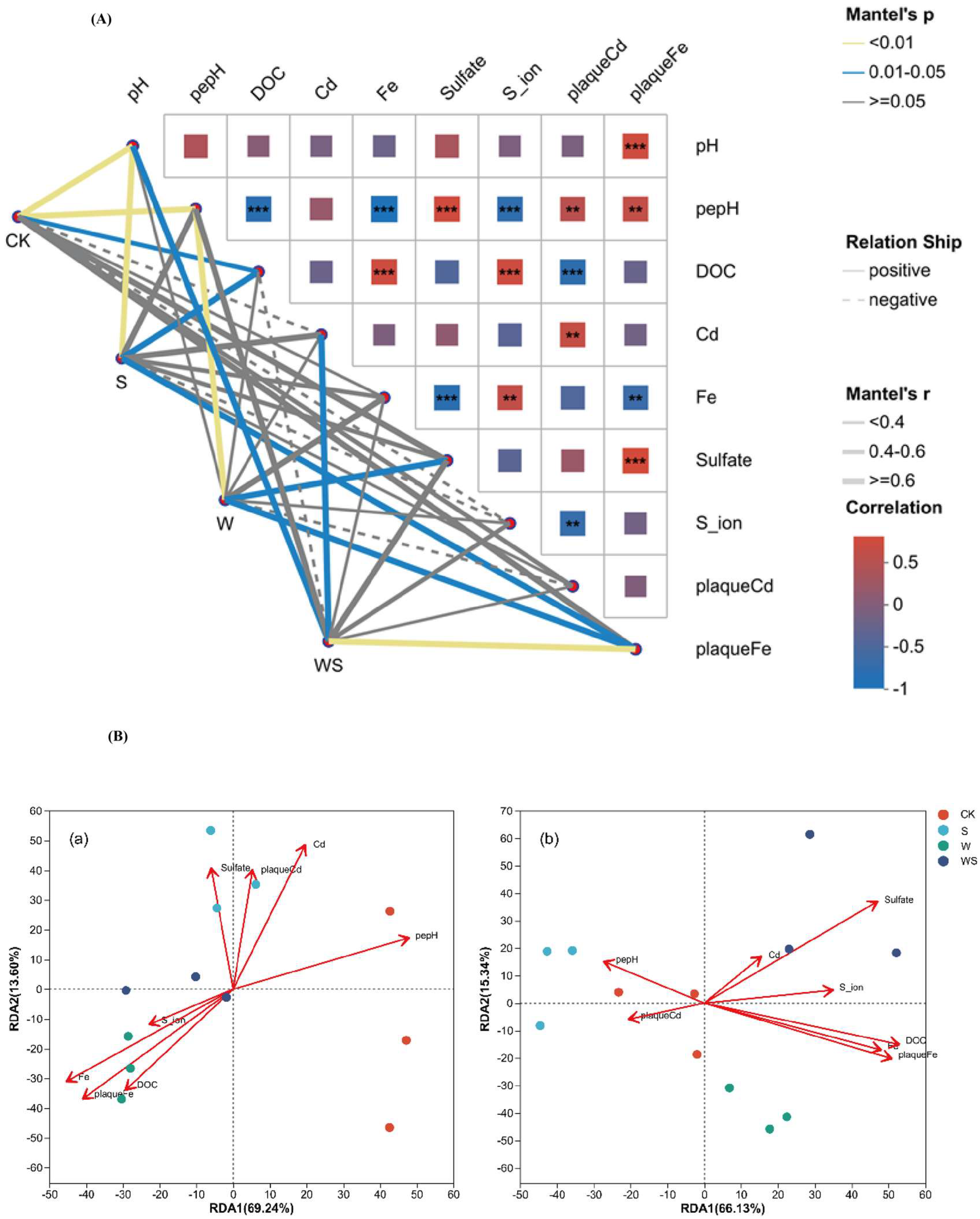 3.8. Correlation of Cd and Sulfur Accumulation in Rice Tissues with Soil and Plaque Properties