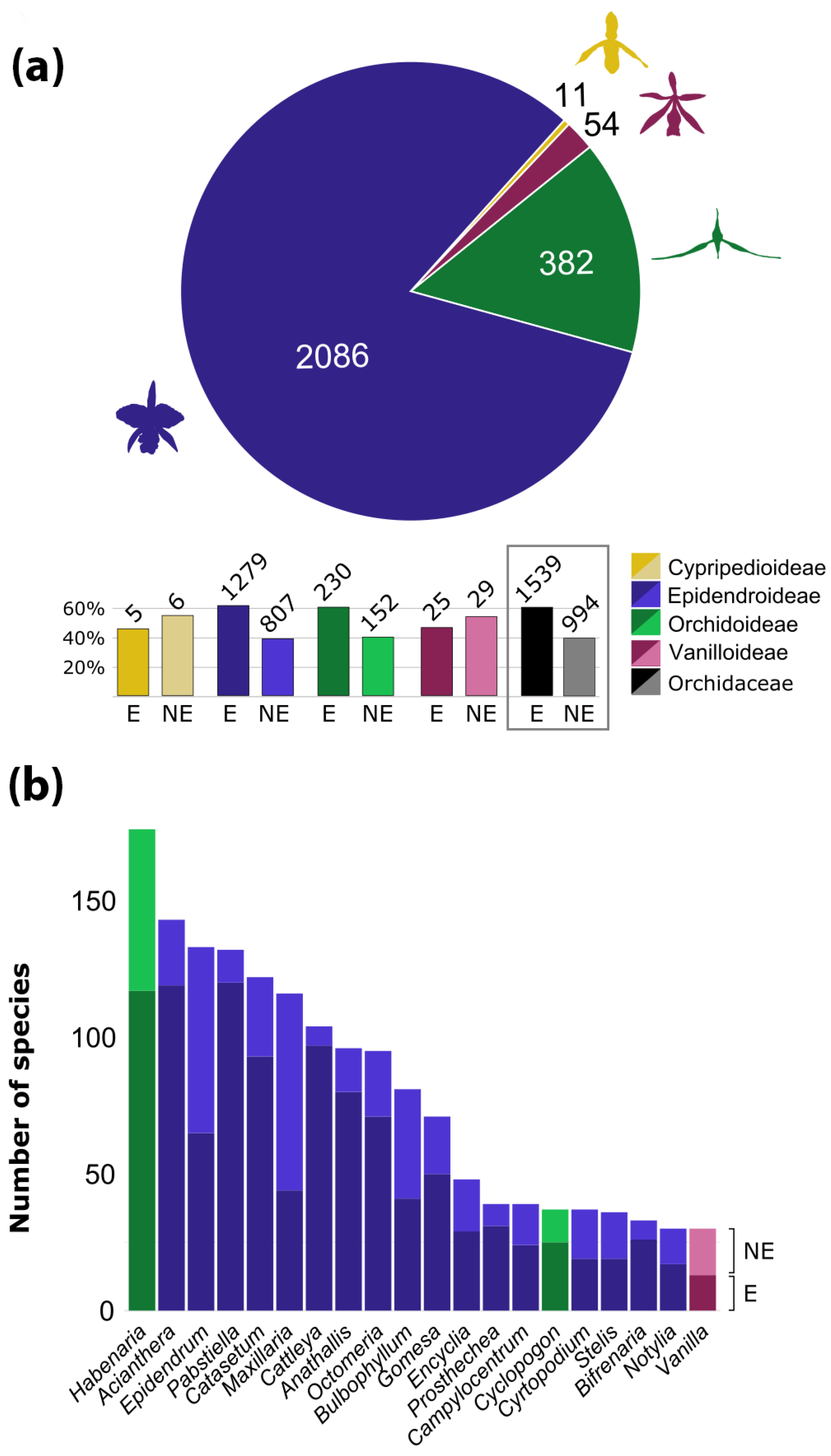 | Epidendroideae | 2063 (1281) | Cymbidieae | 818 (440) | Catasetinae | 186 (127) |