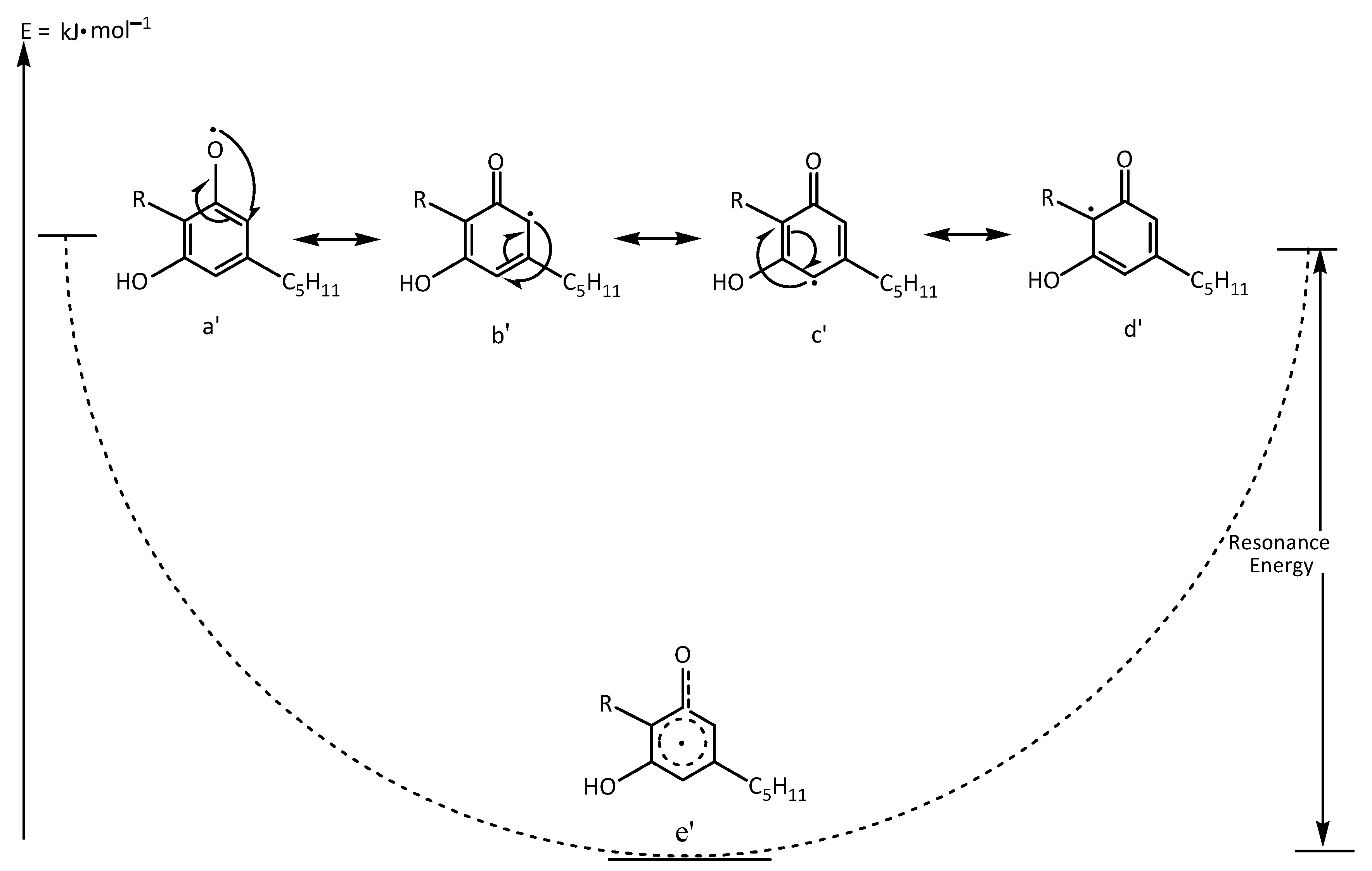 - Vacek, J.; Vostalova, J.; Papouskova, B.; Skarupova, D.; Kos, M.; Kabelac, M.; Storch, J. Antioxidant function of phytocannabinoids: Molecular basis of their stability and cytoprotective properties under UV-irradiation. Free Radic. Biol. Med. 2021, 164, 258–270. [Google Scholar] [CrossRef]