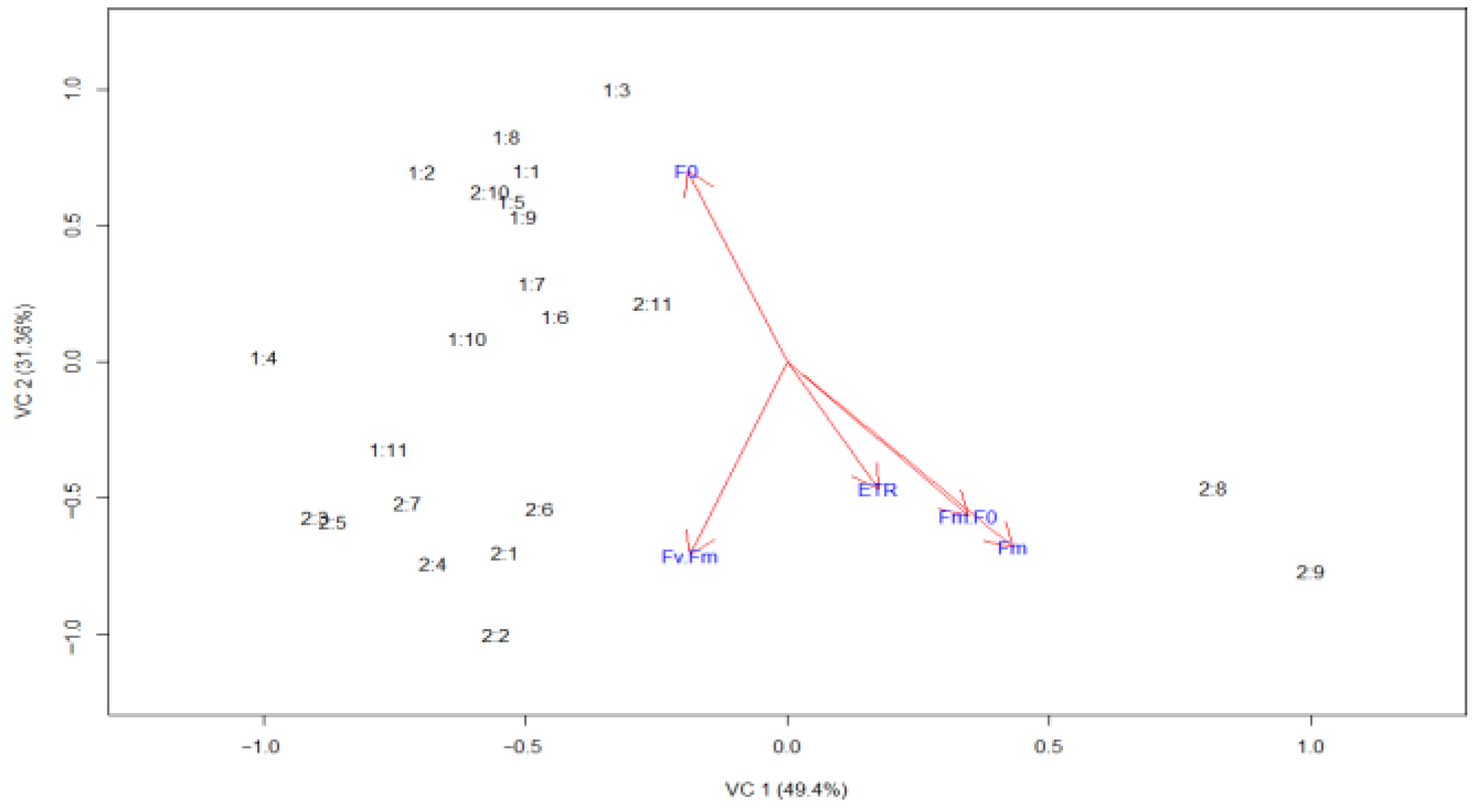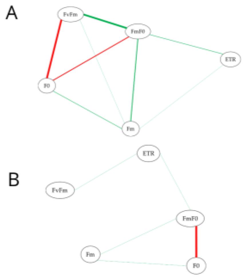 4.2. Chlorophyll a Fluorescence