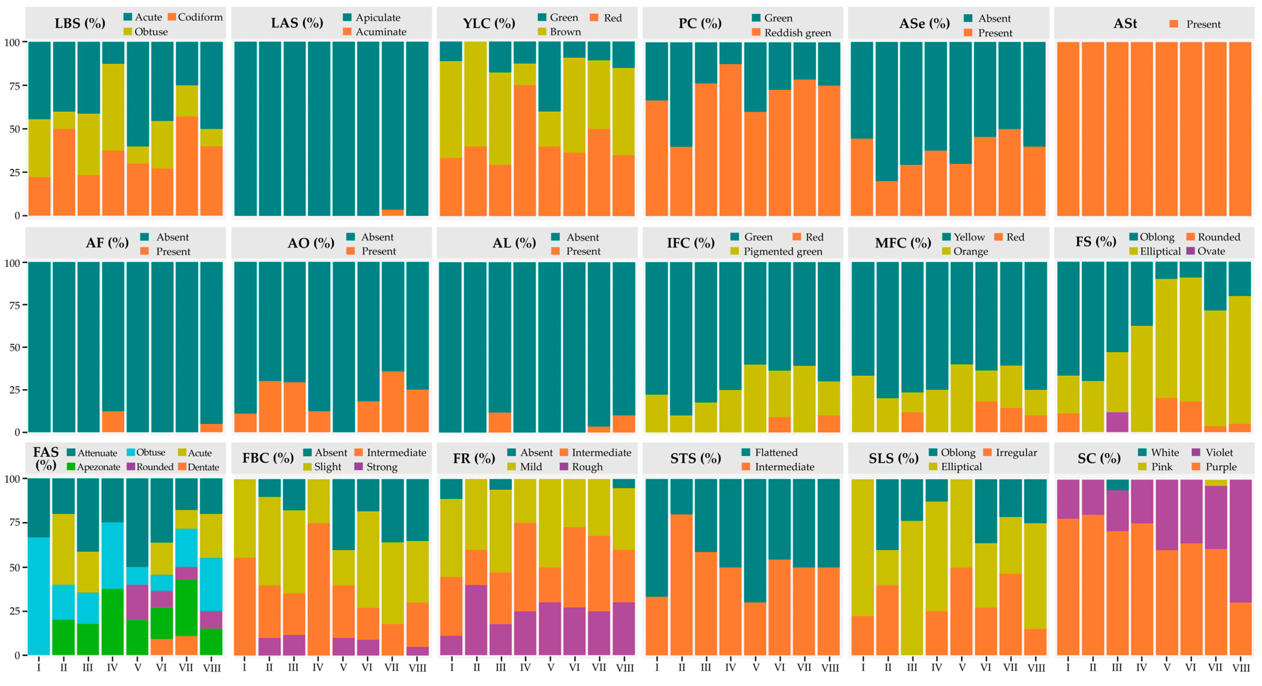 | Fruit | Immature fruit color | IFC | Green (1), Pigmented green (2) and Red (3) |