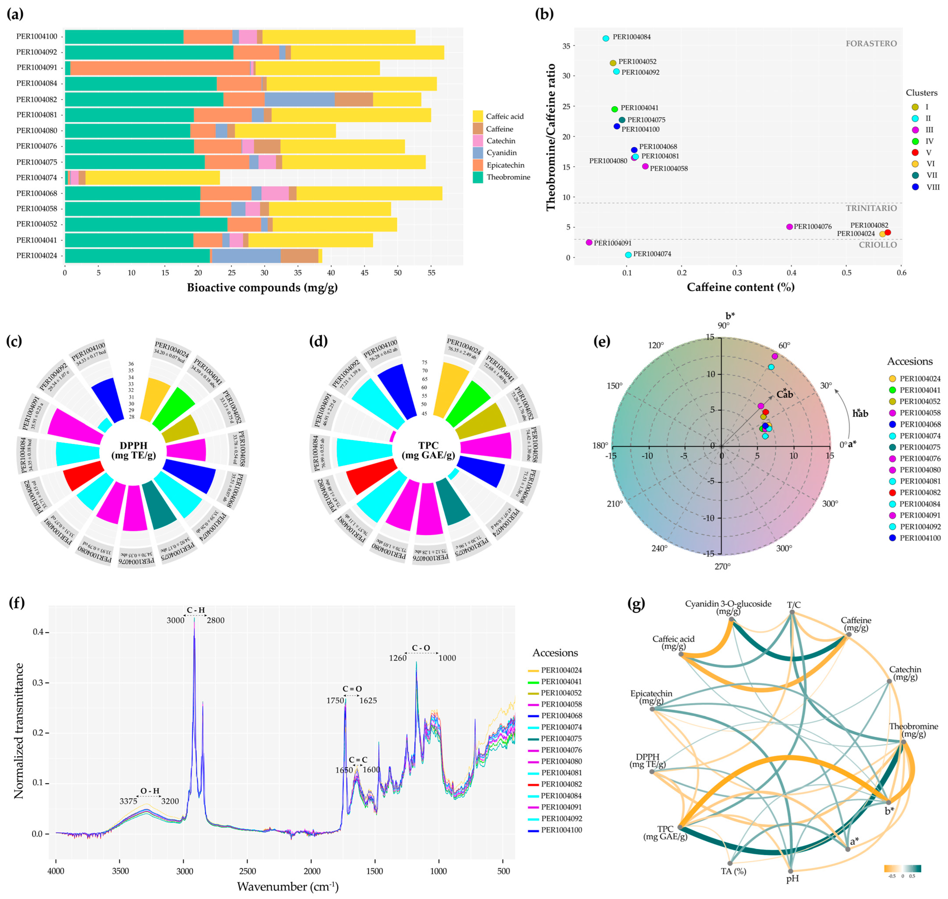 - Vásquez-García, J.; Santos-Pelaez, J.C.; Malqui-Ramos, R.; Vigo, C.N.; C, W.A.; Bobadilla, L.G. Agromorphological characterization of cacao (Theobroma cacao L.) accessions from the germplasm bank of the National Institute of Agrarian Innovation, Peru. Heliyon 2022, 8, e10888. [Google Scholar] [CrossRef]