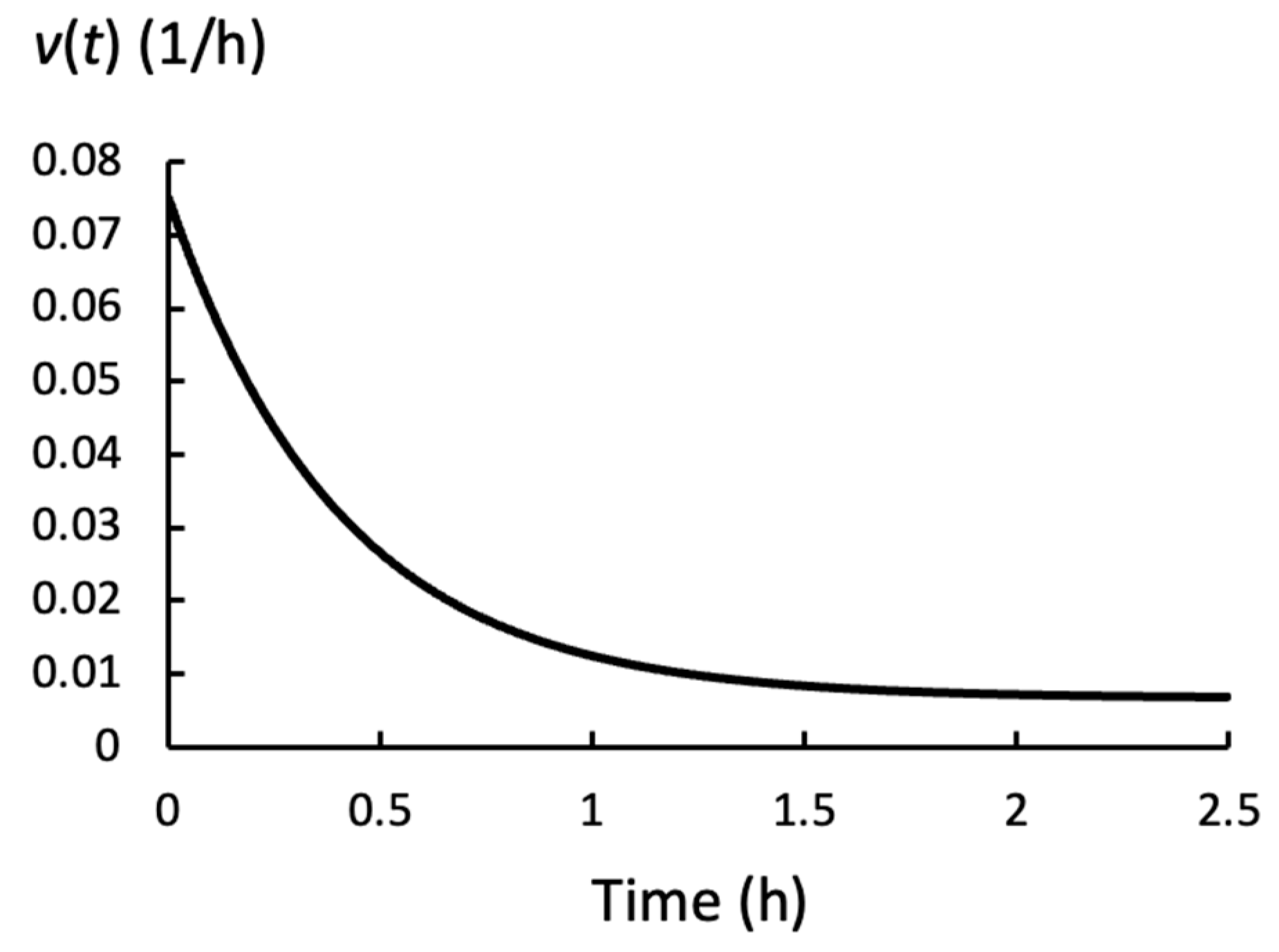 | Biophysical Variable (Units) | t < 0 | Time Intervals 0.0 h ≤ t < 0.75 h | 0.75 h ≤ t < 1.5 h | 1.5 h ≤ t < 2.5 h |