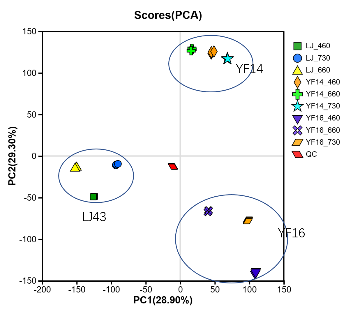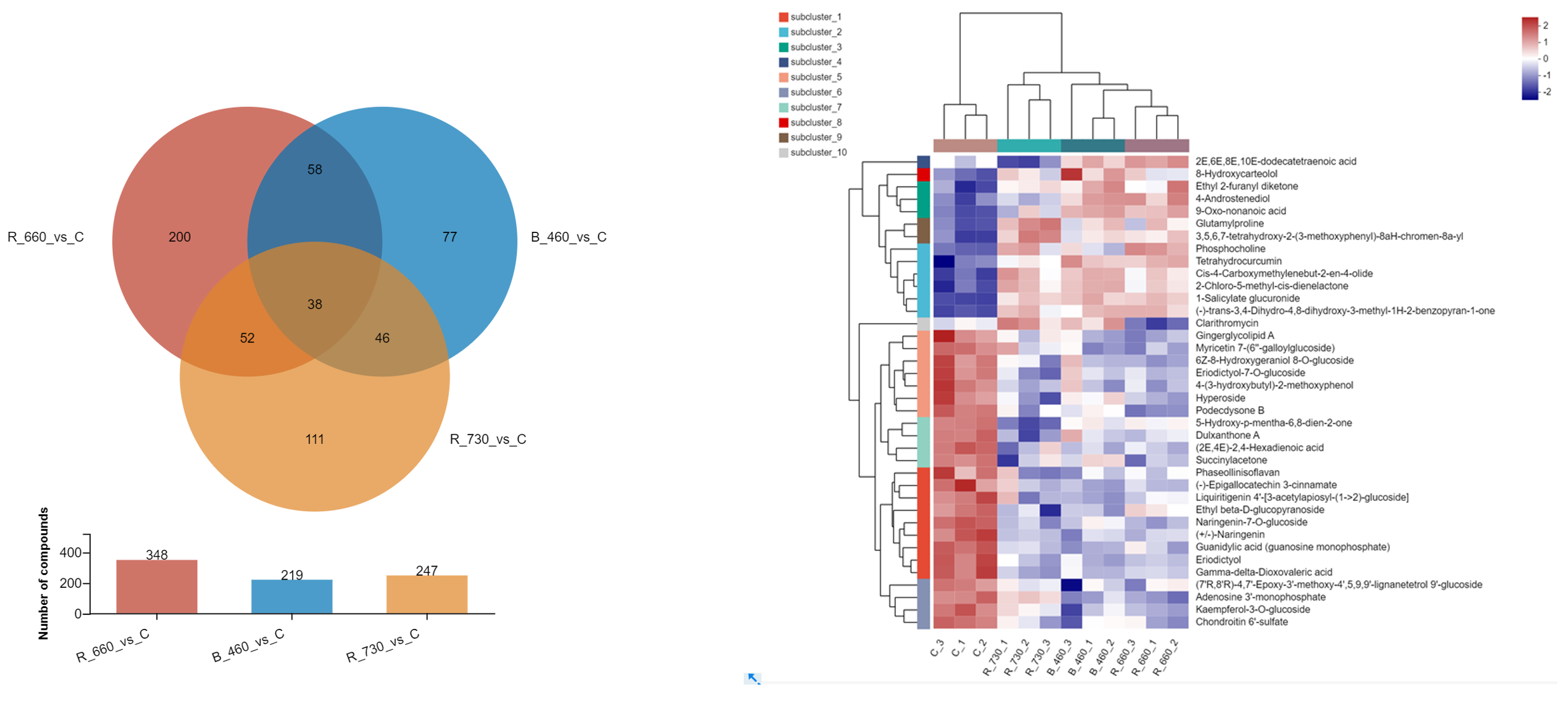 2.4. Untargeted Metabolomics Contents Identification of LJ43 Exposed Under 3 Different Lights